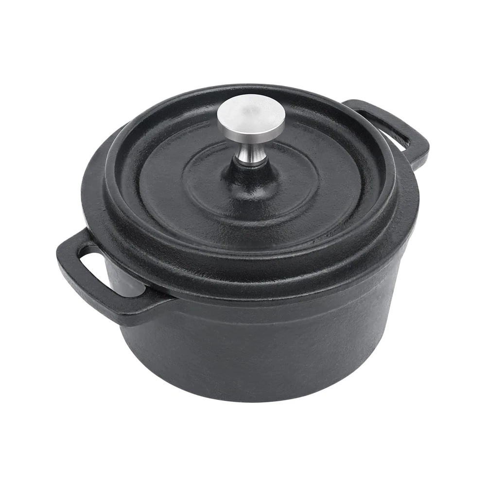 Mini Cocotte 8 oz. Garlic Roaster. The cast iron mini sets are ideal for having sauces on the dinner table. Good as a butter dish and salt crock. Pre-seasoned with vegetable oil. It gives natural qualities to the mini cocotte and prevents it from rusting. This mini dutch oven can not only do individual servings at the table, but also recipe bake faster in the smaller sized dish, making them ideal for serving a crowd. Serves as a great holiday gift on Thanksgiving Day, Christmas, Mother's Day and Valentine's Day etc. The capacity of this mini cocotte is 1 cup (8 oz). Holds 1 large or 2 medium garlic bulbs, but also great for baked brie cheese, queso, small cake and soup. Perfect cast iron set for family and parties where each person can have his own individual pot mini dishes. This mini dutch oven recipes bake faster in the smaller sized dish, ideal for baking garlic, as a butter dish or salt crock. Serves as a great holiday cast iron cookware gift on Thanksgiving Day, Christmas, Mother's Day and Valentine's Day etc. Cast iron dutch oven has superior heat distribution and retention, ensures that your food stays hot for longer. Cast iron cookware can be used on gas, electric, ceramic, and induction cooktops. Broil, braise, bake, or roast in the oven up to 500°F. The heavy lid of this cast iron dutch oven can circulate steam and return moisture back to the food. The ergonomic handles provide hold support. Always use oven mitts or potholders while moving cast iron cookware from the heat source. Pre-seasoned with vegetable oil. It gives natural qualities to the mini cocotte and prevents it from rusting. Hand washing with warm soapy water and nylon scrub brush. Drying promptly and thoroughly. Applying a very thin layer of cooking oil or seasoning spray onto the surface. Store in a dry place.