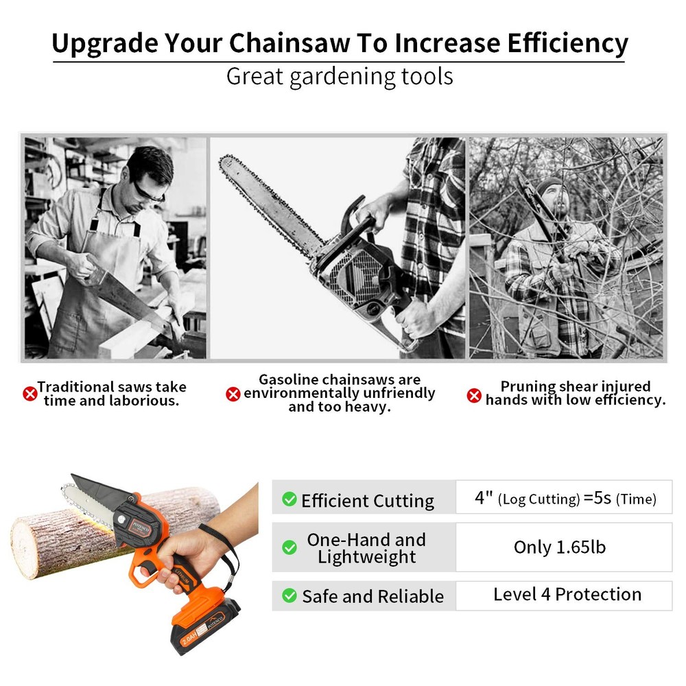 This little powerhouse is an absolute game-changer! So lightweight and easy to handle, it makes pruning and cutting feel effortless. The battery power is super convenient, no more struggling with cords or heavy gas saws. Perfect for quick yard work and DIY projects!