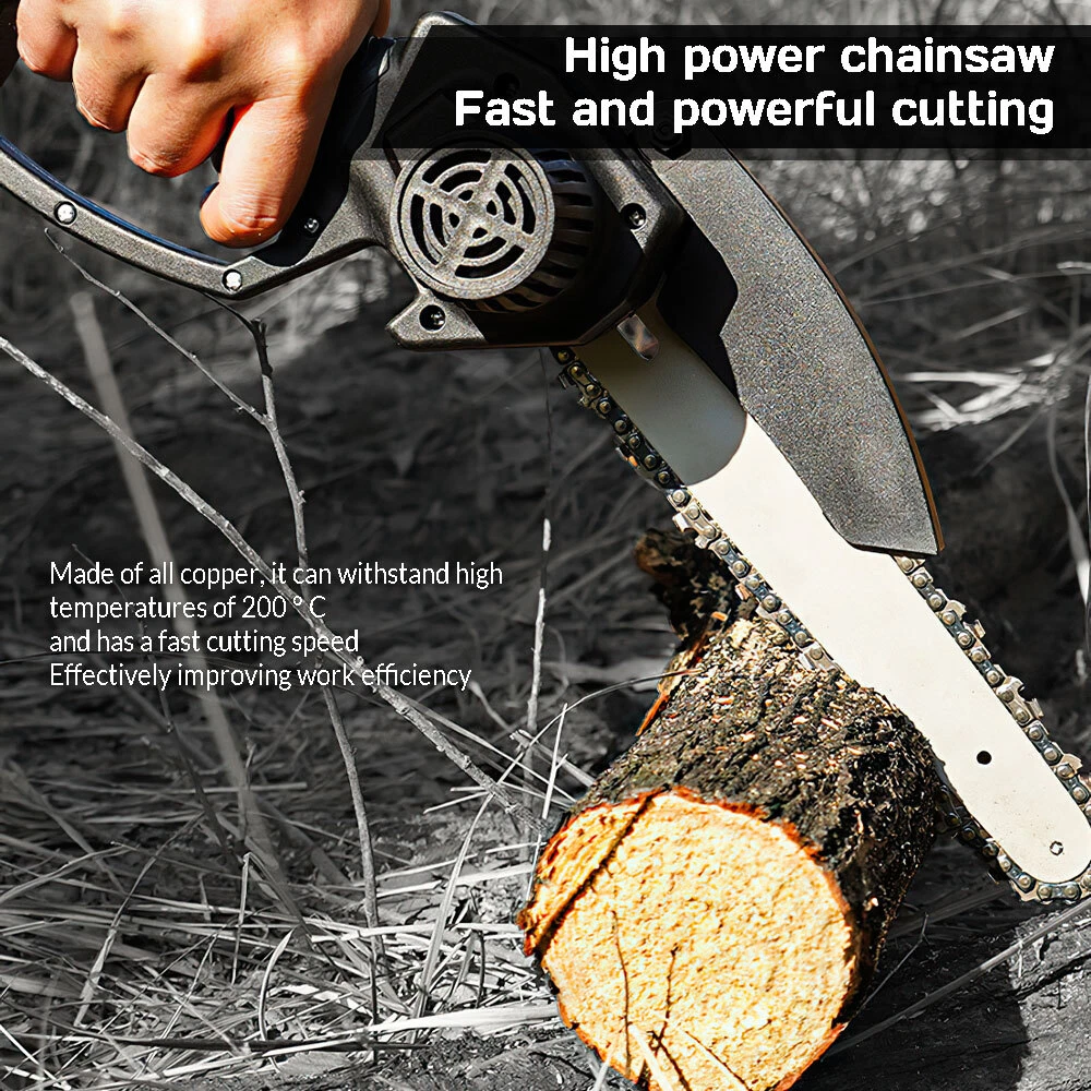 This mini cordless chainsaw is a game-changer for small cutting tasks! Lightweight yet powerful, it handles branches and logs effortlessly. The included batteries and multiple blades make it super convenient, and the battery life is impressive for its size. Perfect for quick yard work—no cords, no hassle! Highly recommend for anyone needing a portable cutting solution.
