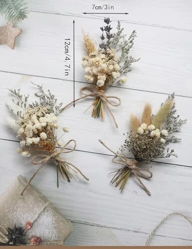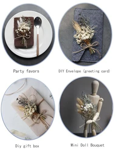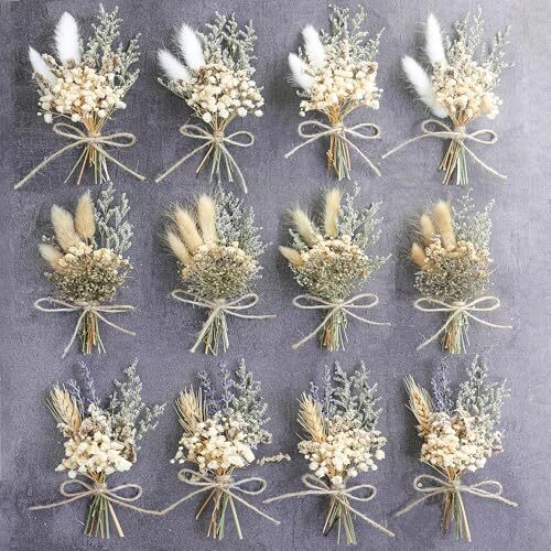 Return Policy Fast Delivery Trusted seller Mini Dried Flower Bouquet Set of 12, Dried Flower Small Bouquet, Dried Flower Decoration, Dried Flower Wedding Flower Arrangement.(Primary Colour) Product Description ❤ Mini natural dried flower bouquet, 12 small flowers bouquet, can be used for bridal showers, parties, bridesmaid flower girl gift boxes, birthday cake table decorations, table baby bottle arrangements, bohemian wedding decorations, home decorations or add to your gift boxes. ❤ The 12 bouquets range in size from 3 inches to 5 inches and consist of a variety of natural dried flowers such as bunny tails, baby's breath, wheat, lavender, fern leaves and more. ❤ All bouquets are natural products, handmade by a florist, so each bouquet will vary slightly, but the beauty and shape will remain the same. ❤ Due to the nature of dried flowers, please take extra care when handling them. Some flowers are very fragile and fall off easily. The stems of dried flowers are hard to avoid. Shipping Returns Payment Shipping Shipping is FREE to all addresses other than APO/PO boxes in the lower 48 states. All our stock ships from US-based warehouses. Shipped via USPS or UPS (depending on location and package weight) Unless stated otherwise, all orders will ship within 24-72 hours of your payment being processed. Check our feedback to see the great reviews of FAST shipping we offer. Returns Seller does not accept returns Payment We currently accept payment via eBay managed payments only. Once payment is cleared, we will dispatch your shipment within 1-3 business days. Please refer to the "Shipping" tab for more information regarding shipping speed to your destination.