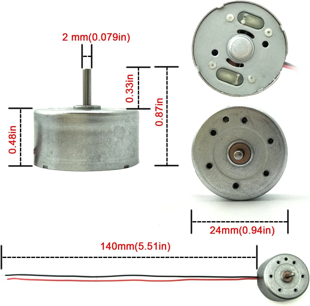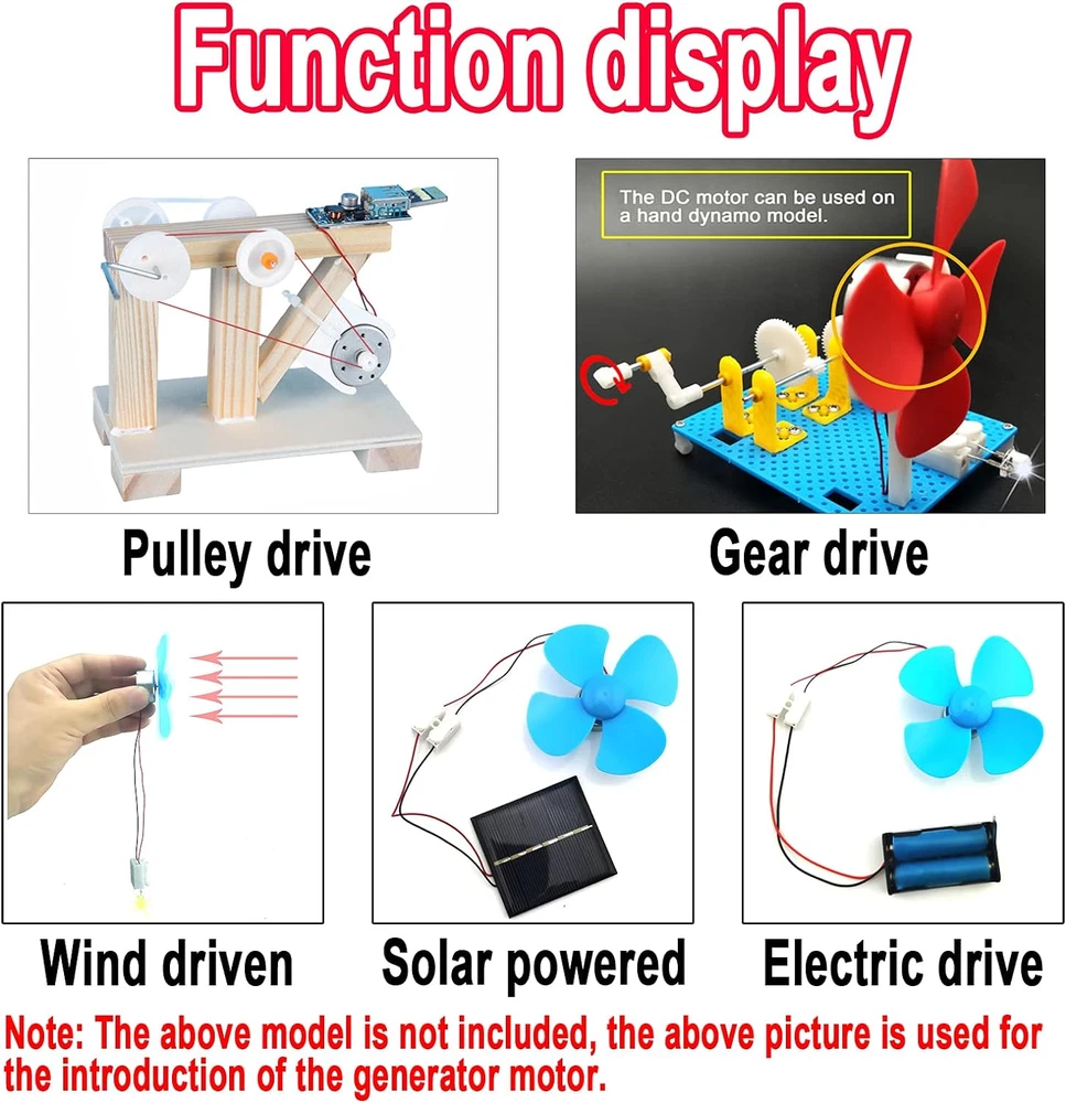 Store New Arrivals Add to Favorite View Feedback Contact EUDAX Mini Generator Motors 3V-12V DC Motor Electric Motor for DIY Toys Wind Turbine Generator Hand Cranked Power Generator Model (Plastic Motor Holder) Description Item model number EH-DCM-300 Is Discontinued By Manufacturer No Brand EUDAX Material plastic, Metal, Copper Item Weight 7 ounces Manufacturer recommended age 8 years and up Voltage 12 Volts Speed 6500 RPM Package Dimensions 7.56 x 4.41 x 1.26 inches Manufacturer EUDAX Color:Silver;Voltage:DC 3V;Rated Speed:1500 RPM;Voltage:DC 4.5V;Rated Speed:2500 RPM;Voltage:DC 12V;Rated Speed:6500 RPM; Motor Body Diameter:24mm/0.94";Motor Height:22.21mm/0.87"Shaft Size:8.25x2.0mm/0.32"x0.08";Line length:14cm/5.51in±1cm Great fun Motor,perfect for mini fan,electric toys and science experiments etc. You can use it to build a micro motor wind turbine generator or Wind Turbine Generator.hand-cranked generator model, solar power model. Package includes: 6 pcs Generator DC Motor ; 6 pcs Motor Mounting Bracket Holder;3 pcs 4 vanes propeller;3 pcs 3 vanes propeller;9 pcs mini LED;6 pcs connectors(Does not contain other things) Description: EUDAX Mini Generator Motors 3V-12V DC Motor Electric Motor for DIY Toys Wind Turbine Generator Hand Cranked Power Generator model Great fun Motor,perfect for mini fan,electric toys and science experiments etc.You can use it to build a micro motor wind turbine generator or Wind Turbine Generator.Ages 8 and up. Features: -Color:Silver -Voltage:DC 3V-12V -Rated Speed:1500-6500 RPM -Motor Body Diameter:24mm/0.94" -Motor Height:22.21mm/0.87" -Shaft Size:8.25x2.0mm/0.32"x0.08"(L*D) -Line length:14cm/5.51in Package including 6 x Generator DC Motor 6 x Motor Mounting Bracket Holder 6 x Propellers(Color random) 6 x Quick Connectors 9 x LED CHOKING HAZARD -- Small parts. Not for children under 3 yrs. ABOUT US We offer the best prices around on high quality products. Our E-store includes media such as books, movies, music and games while offering electronics, toys, sporting apparel, clothing, tools, general home, garden items and more. SHIPPING We are always working hard to ensure your package arrives as soon as possible. Please understand that some factors like weather, high postal traffic, and the performance of shipping companies are outside of our control. We offer free shipping to the lower 48 states and ship within 2 business days of payment, usually sooner. We do not accept P.O. Boxes. Please provide a physical address. RETURNS We offer a 30-Day Return Policy on items which you are not completely satisfied with. You have the option for a full-refund or an exchange of the item. No returns are available on items shipped outside of the USA. PAYMENT We accept PayPal. CONTACT US This page content is yet to come Please ad us to your favorite seller and visit again later Thank You CUSTOMER SATISFACTION We try our very best to make sure every customer is completely satisfied. If there's a problem, message us! We're happy to help.