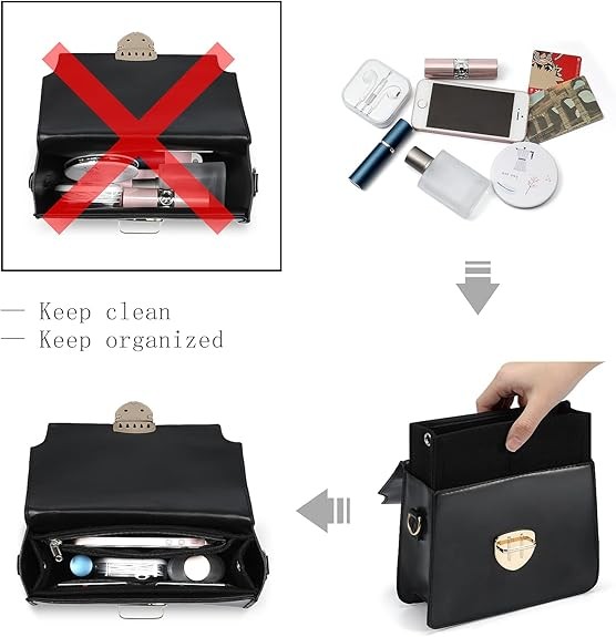 Mini Felt Purse Organizer Insert Small Tote Bag Organizer With Zipper Black Size: S:7" (L) x 4.3" (H) x 2" (D/W); L: 9.4" (L) x 5.3" (H) x 2" (D/W) Save space and make reasonable use of the space in the bag, many items like phone, key, lipstick can be well organized. Handbag Tote Organizer with 2 metal buckles is designed, which are convenient to attach with chain strap. 1 zipper pocket to keep your valuables from being stolen. The purse organizer is made of felt which is exquisitely made,good sewing, pliable and sturdy. Lightweight handbag organizer does not increase the weight of the bag. The slim purse insert is perfect for putting in Handbag/Tote Bag/Women Crossbody Bag which without any compartments or pockets. Shipping We offer FREE shipping on all orders! We ship within Three business days of payment, usually sooner. We use a selection of shipping services such as UPS, FedEx, USPS etc. We only ship to the lower 48 states, no APO/FPO addresses or PO Boxes allowed. Local pickups and combined shipping options are not provided at this time. Return You can return a product for up to 30 days from the date you purchased it. Any product you return must be in the same condition you received it and in the original packaging. Please keep the receipt. Customer satisfaction is very important to us. If you have any problem with your order, please contact us and we will do our best to make you satisfied. Contact Us If you have any queries, please contact us via ebay. We usually respond within 24 hours on weekdays. Please visit our eBay store to check out other items for sale! Thank you for shopping at our store.