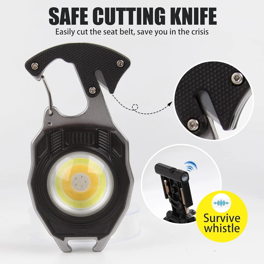 【High Lumen Flashlight】: This keychain edc flashlight adopts advanced COB technology LED chip, which has strong penetrating power, it can emit 1000 high lumen bright floodlight, we can walk easily on the dark road. Mini flashlight is made of high-quality aluminum alloy material, IPX6 waterproof, durable, impact-resistant, not easy to rust and break, we can use it for a long time 【3 light source lighting】: magnetic flashlight Portable pocket light has 3 light source lighting (COB red light, COB white light, COB yellow light), we can adjust multiple gears according to needs. It can easily switch the light mode with the push of a button, which is very convenient for us to use. The LED flashlight has red light and red strobe mode, it can provide warning lighting when camping, foggy or emergency 【Multifunctional Mini Flashlight】: emergency flashlight has two types of screwdrivers (Phillips, Slotted), which can be used at any time, and it can easily solve field repair problems. The seat belt cutter can be used to cut off the seat belt in an emergency. The rechargeable flashlight has a back selection bracket, which can freely adjust the angle by 180°. Cigarette lighting function on the back, it is safe and not hot 【USB Rechargeable】: This COB keychain work light has a built-in large-capacity rechargeable battery, it can be charged through the type C port, and the running time is 2-3 hours. The blue light flashes when charging, and the blue light stays on when fully charged. The small flashlight has an aluminum alloy bottle opener and a hidden whistle port, which makes our outdoor camping more convenient 【 Multi purpose 】: The mini LED flashlight has a sturdy adsorption base that can be connected to any metal, allowing us to perfectly free our hands. This flashlight features a spring lock design that can be easily secured to a key or bag, allowing us to use it anytime and anywhere in emergency situations. This keychain flashlight is small and lightweight, suitable for camping, dog walking, fishing, hiking, and searching