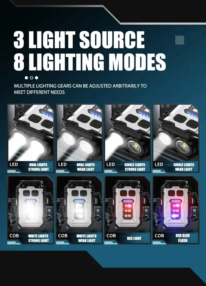 Product Description 【Super Bright Keychain Flashlight】 This clip flashlight has dual LED main lights that can produce up to 500 lumens. Lighting distance exceeds 98 feet/30 meters. IP65 waterproof, you can use it even when it rains (Please note: it cannot be immersed in water). Press and hold the switch for 2 seconds to turn it on, then press the button to switch the lighting mode. Press and hold for 2 seconds to turn it off. 【8 Modes Light Sources】 This keychain flashlight has 8 light modes. 4 Types of main lights: single source/strong light, single source/low light, dual source/strong light, dual source/low light. 4 Types of COB side lights: white /strong light, white/low light, red light, red and blue flashing light. Besides, the main light and COB light can work at the same time. Multiple light modes to meet your various needs. 【Lightweight & Compact Flashlight】 This clip on EDC flashlight has a mini body and a 2.4oz/43.5g weight. It can be hung on your keychain, very convenient for daily carry. The shell of the light is fixed with an aluminum alloy, which is very sturdy and shock-resistant. It is the perfect flashlight for daily use or emergency use. 【Extremely Long Working Hours】 This mini flashlight is powered by a rechargeable 750mAh lithium battery, which can provide ultra-long working time. Besides, this keychain light uses USB C fast charging (charging cable included) and can be fully charged in as soon as 2 hours. Moreover, the pocket light has battery indicator lights, which allow you to quickly know the remaining power. No longer worry about battery when you are outdoors. 【Magnetic & Clip on Flashlight】 This flashlight has a powerful clip on the back, which can be clipped on hats, clothes, and bag straps. Great for night running, hiking, exploring, fishing, camping, and more. It can also be used as a warning light for dog walking at night. There is a strong magnet at the tail, which can be used as vehicle repair lighting or as a warning light in emergencies. This flashlight also has a keychain hole, so you can hang it on your keys and take it with you every day. package include: 2 X Mini keychain flashlight 2 X Charging cable Payment Returns Contact Us Shipping Feedback 1. We only accept eBay payments. 2. All payments must be made within 3 days after auction won. Item may be returned for refund or replacement within 30 days of the purchase date. Returned merchandise must be unused, in original packaging and include all accessories. Shipping costs are non-refundable. Please do not hesitate to leave us your 5 Star ★★★★★ of DSR positive feedback if you are satisfaction with our products ,delivery or services . If you have Any Questions Or Unsatisfied with your purchase, please Email us firstly to get a better solution before you leave a neutral or negative feedback, we work hard to make sure every customer 100% satisfied and resolve anyproblem for you. Please email us first in the following situations: 1.The item can't work properly. 2.The item broken on the post. 3.You bought or received the wrong items. 4.You have not received your shipment within the period. 5.Before you give us Negative feedback. 6.Before you open a case/return on eBay. All questions will be replied within 24 hours (Except Saturday and Sunday or holidays). Thank you for your kindness! 1. eBay Payments Confirmed Addresses Only. 2. No Delivery to Alaska and Hawaii or PR. 3. No P.O. Box and APO/FPO Delivery. 4. Tracking Number will be provided. 5. Domestic shipping is within the 48 Contiguous States of United States, the delivery time is between 2 and 8 days. Items will be shipped by UPS, USPS or Fedex within 3 business day after receiving full payment. 6. International shipping is from China, the delivery time is between 10 and 30 working days. As a seller , Positive Feedback is very important to us. We try our best to let our customers to be happy. If you have any question about your order, please contact us ,please let us know before you Leave the Negative feedback ,We are willing to do our best to make up for it, Thank you very much ! Payment 1. We only accept eBay payments. 2. All payments must be made within 3 days after auction won. Returns Item may be returned for refund or replacement within 30 days of the purchase date. Returned merchandise must be unused, in original packaging and include all accessories. Shipping costs are non-refundable. Please do not hesitate to leave us your 5 Star ★★★★★ of DSR positive feedback if you are satisfaction with our products ,delivery or services . Contact Us If you have Any Questions Or Unsatisfied with your purchase, please Email us firstly to get a better solution before you leave a neutral or negative feedback, we work hard to make sure every customer 100% satisfied and resolve anyproblem for you. Please email us first in the following situations: 1.The item can't work properly. 2.The item broken on the post. 3.You bought or received the wrong items. 4.You have not received your shipment within the period. 5.Before you give us Negative feedback. 6.Before you open a case/return on eBay. All questions will be replied within 24 hours (Except Saturday and Sunday or holidays). Thank you for your kindness! Shipping 1. eBay Payments Confirmed Addresses Only. 2. No Delivery to Alaska and Hawaii or PR. 3. No P.O. Box and APO/FPO Delivery. 4. Tracking Number will be provided. 5. Domestic shipping is within the 48 Contiguous States of United States, the delivery time is between 2 and 8 days. Items will be shipped by UPS, USPS or Fedex within 3 business day after receiving full payment. 6. International shipping is from China, the delivery time is between 10 and 30 working days. Feedback As a seller , Positive Feedback is very important to us. We try our best to let our customers to be happy. If you have any question about your order, please contact us ,please let us know before you Leave the Negative feedback ,We are willing to do ou