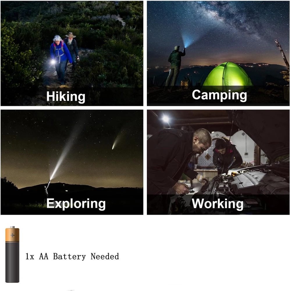 Menu Other Items Feedbacks About Us Contact Us Add To Favorites Mini Flashlights 4 Pack, Super Bright LED Tactical Flashlight with Cli VALUE PACK - The package comes with 4 x small flashlights at the best price! 180 lumens (Max) output, enough brightness for daily use. Our mini flashlight can produce an intense beam of light to illuminate anywhere you point. PORTABLE - The mini LED torch is 3.7" by 1.0", very convenient to carry, all 4 of them are nicely packed in a box, protected by a bubble bag, and super easy to store as well. With a metal clip attached to its bottom, the flashlight can be carried around in your pocket, backpack, or belt. PREMIUM QUALITY - The small flashlight is made of aluminum alloy, this material is anti-abrasive and drop-resistant. Its handle is featured with an anti-slip texture, it stays in your hand perfectly. The push button is protected by an o-shape rubber, it is durable and very easy to adjust the torch's mode. FUNCTIONAL FEATURE - Zoomable LED light beam, the light can be adjusted to focus or wide. Perfect gear for multiple occasions, such as hiking, camping, outdoor, home use, emergency use, etc. WARM TIPS - The flashlight is powered by single AA battery (Not Included). HinsGEAR provides meticulous customer service, we offer 24/7 customer service and 30 days of unconditional returns & refunds, it is a risk-free purchase! Product Description TECH SPECS Material Aluminum Alloy Light Source LED Max Performance 180 Lumens Lighting Mode Single-Mode Battery Type AA Is Battery Included No Waterproff IPX5 Dimensions 3.7" by 1.0" Package Quantity 4 Use Camping, Hiking, Home Use and more Item Specification Item model number SK68 Light Source Type LED White Brightness 180 Lumens Power Source Battery Powered Brightness 180 Lumen Color 4 Pack Material Type Aluminum Product Dimensions 0.98 x 0.79 x 3.94 inches; 6.38 ounces Material Aluminum Country of Origin China Supported Battery Types Alkaline Item Weight 0.4 Pounds Style Name Compact Recommended Uses For Product hiking, camping, outdoor use, home use, emergency use Battery Type Alkaline Included Components 4 x SK68 LED Flashlight Additional Features Portable, Small Pocket Size, 1 Mode, Adjustable Focus Water Resistance Level Water Resistant Special Feature Portable, Small Pocket Size, 1 Mode, Adjustable Focus Dimensions Shipping Returns Additional Info Product Dimensions: 0.79 inches x 0.98 inches x 3.94 inches. Weight: 0.4 lb Fast shipping is very important for us. Our standard shipping service is FREE. Your order will be shipped within 1-3 business days upon full payment received. Most items are delivered within 3-5 business days, however, please allow 3-10 business days. We are shipping only to USA. We only ship to the confirmed Paypal address. We reserve the right to cancel any order for any reason at any time. We are not responsible for undeliverable addresses. We offer a 30 day return policy from checkout winning date. Your satisfaction is guaranteed! If for any reason you are unhappy with your item, just return it within 30 days for a full refund, minus shipping cost. Please contact us prior to initiating a return so that we can issue you a refund authorization. Items defective upon receipt must be packaged in their retail packaging as if new and returned with a detailed description of the problem. Return shipping fees are not refundable. We reserve the right to decline any returns if the above guidelines are not followed. All of our items, unless otherwise stated, will only run on 120 volts. Please check to make sure your country complies with these specifications. If you have a problem or question regarding your transaction please contact us before leaving any type of feedback. We will work with you to resolve any problem you may have.