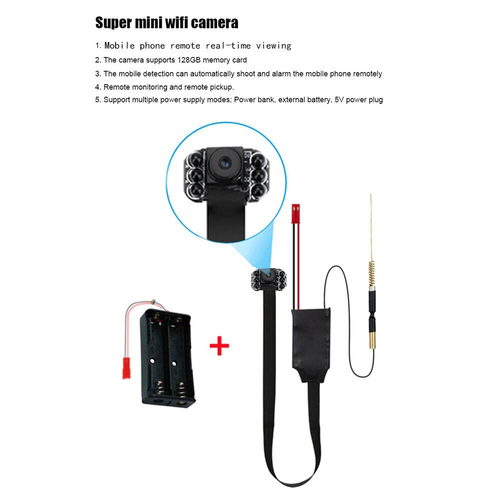 It is not allowed to use surveillance cameras to monitor and record others' privacy without their knowledge. Features: 1. [Mini] This camera module is equipped with HD mini lens, which fully meets DIY needs. This wireless camera can be used as a security camera to monitor your home or office. 2. [IR Night Vision] These special infrared lights are completely invisible to the human eye, but the built-in infrared light allows the camera to work at night or in dark environments. 3. [Motion Detection] With motion detection and smart alert function. When an object or person moves within the field of view, you will immediately receive a notification on your cell phone. It allows you to view events without delay and not miss any important moments. 4. [Micro SD Card Recording and Storage] With this application, you can view videos directly and download them to your phone. You can also insert a micro SD card for loop recording or timing ( SD card up to 128GB, not included ). This WiFi camera is very easy to use for anyone. 5. [Remote Viewing] Connect the mini camera to your router's WIFI and then you can access your camera unit remotely. By using the free camera app, you can view your house/kids/pets/babysitters from your phone anytime, anywhere. It allows you to live stream from anywhere to capture 1080p/30fps super clear pictures/videos of your home/office/store or anything you want to care about. Specifications: *WIFI wireless IP network remote monitoring *Playback, video, recording synchronization function *Support simultaneous recording and loading *P2P mode ( distance: about 10 meters without obstacles ) *Video resolution: 1080p *Video format: AVI *Recording frame rate: 30 fps *Lens Viewing Angle: 120° *Photo function: Support *Motion Detection: Support *Infrared night vision: support *Application: V380pro *Operating System: iphone/android *Product Color: Black *Maximum support 128GB Micro SD card ( SD card not included ) *Operating power: 2 18650 batteries ( 2 18650 batteries not included ) *Working time: 8 hours Package List: 1* mini camera ( 2x18650 batteries not included ) 1* micro USB cable 1* user manual 1* battery box Attention: 1. 2pcs 18650 batteries are not included, Micro SD card is not included! 2. Please allow 1.2cm deviation due to manual measurement. Thank you very much! On Dec 18, 2024 at 01:39:15 PST, seller added the following information: