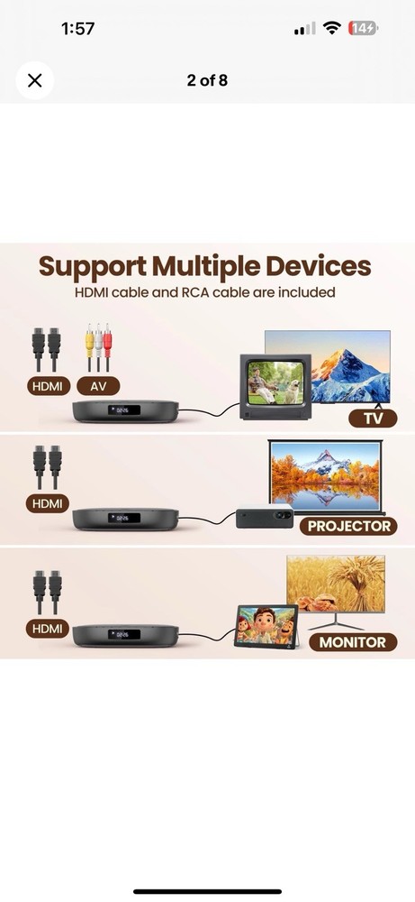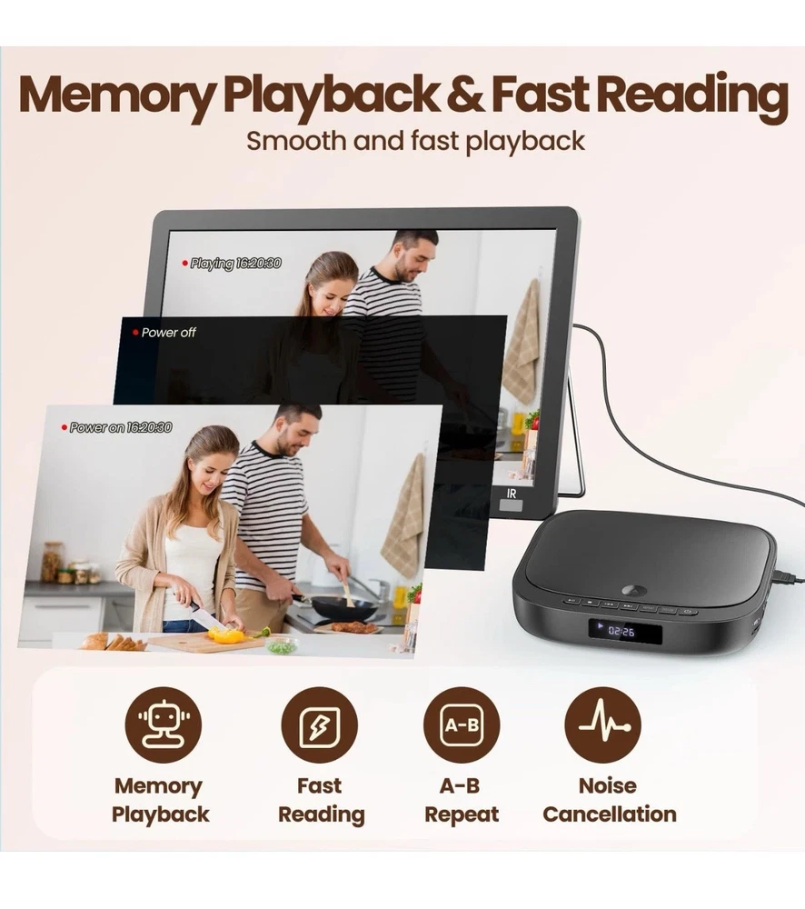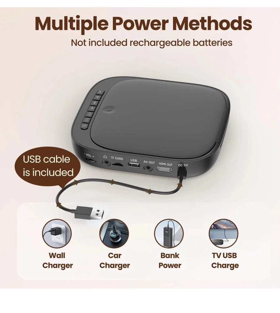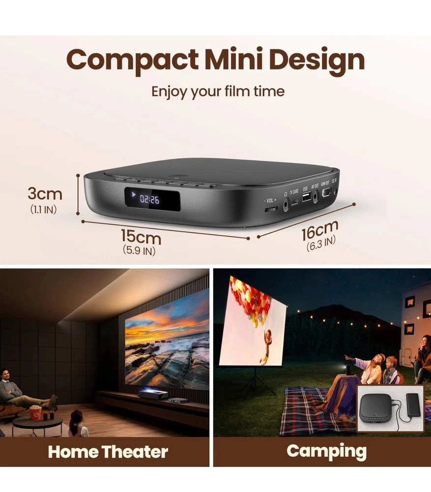 Mini DVD player with HDMI output HDMI & AV OUTPUT: DVD players for TV comes with HDMI and AV cables. The HDMI connection cable provides sharper video quality for Smart TV, projector and monitor, and the AV cable supports connection to old TVs. ALL REGIONS FREE: Region free DVD player supports many disc formats, including (DVD/SVCD/CD/CD/MP3/Kodak Picture/Photo CD/DivX). Note: Blu-ray discs are not supported! USB /TF CARD INPUT: mini DVD player supports playback of MPEG-1V, MPEG-2V, H.263, XVID, DX50, DIVX, MP3, MP2, WMA, AC3, PCM, JPG (max. 32GB with FAT32 format, resolution up to 720p). DRIVE UPDATE & BREAK POINT MEMORY: Ours DVD players features an updated drive core that enables quiet loading and fast reading of DVDs, as well as an error correction function that makes it easier to read discs with scratches. The breakpoint save function ensures that you always pick up where you left off. Note: Blu-ray discs are not supported! Cannot be connected to a computer as an optical drive!