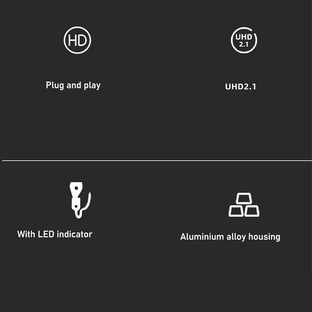 Feature: 1. 180 Degrees Angled: This Mini HD Multimedia Interface to HD Multimedia Interface adapter adopts 180 degrees angled design, which is space saving and easy to use. 2. 8K 60Hz Supported: This Mini HD to HD converter supports 8K 60Hz standard, up to 48Gbps transmission, downward compatible with 4K 30Hz/4K 120Hz/1080P. 3. Plug and Play: This Mini HD male to HD female adapter with gold plated connector is plug and play, support audio and video transmission. 4. Wide Application: This Mini HD to HD female adapter is suitable for laptop, video camera, camera, for RasPi 4, tablet and other devices with Mini HD Multimedia Interface. 5. LED Indicator: This HD Mini to HD adapter is designed with LED indicator. The housing adopts aluminium alloy material. Specification: Item Type: Mini HD to HD Adapter Material: Aluminium Alloy Version: UHD2.1 Picture Quality: 3D Video Support 8K: 7680x4320 Resolution, 8K 60Hz/4K 120Hz, Downward Compatible with 2K 240Hz/ 1080P 240Hz Static HDR: HDR Static Data Dynamic HDR: HDR Dynamic Data VRR: Variable Refresh Rate QMS: Quick Media Switching ALLM: Automatic Low Delay Mode Sound Quality: Supports Multiple Audio Streams Audio Channels: 32 Audio Channels Synchronization: Automatic Audio And Video Synchronization Audio Adoption Rate: 1536K Hz Audio Adoption Rate eARC: Enhanced Audio Return Channel Rate: 48Gbps Total Bandwidth QFT: Quick Frame Transfer Applicable Equipment: Monitor, TV, Projector, Computer, Digital Camera, Game MachineAnd Other Equipments Package List: 1 x Mini HD to HD Adapter
