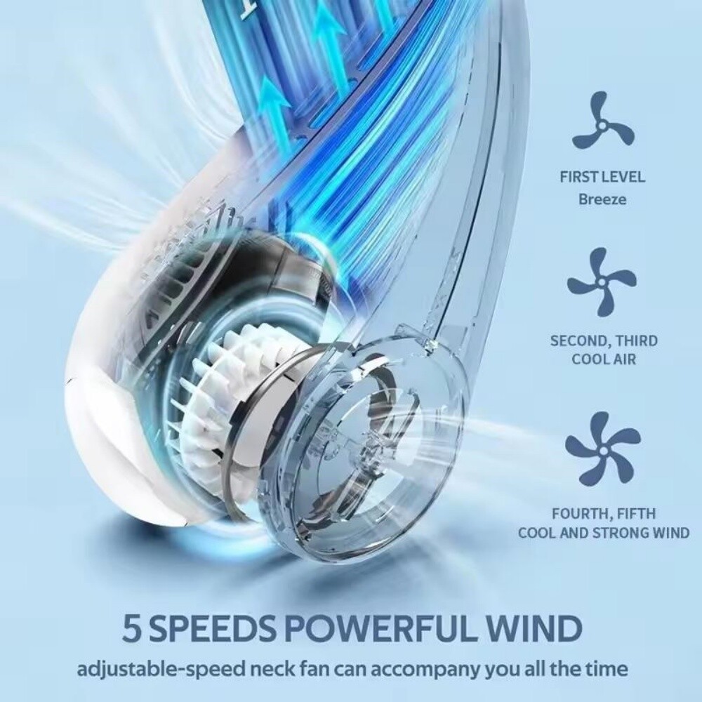 This hanging neck fan is a game-changer for staying cool on the go! The lightweight, bladeless design is super comfortable to wear, and the 5-speed settings let you customize the airflow. I love that it's USB rechargeable—super convenient for travel or outdoor activities. The HD display is a nice touch, showing battery life clearly. At this price with free shipping, it's an unbeatable deal for beating the heat! Works great whether I'm working at my desk or out for a walk. Highly recommend!