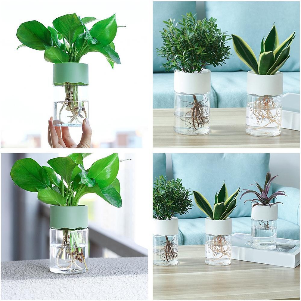 Mini Hydroponic Flower Pot Soilless Home Vase Imitation Glass Decor T7N7