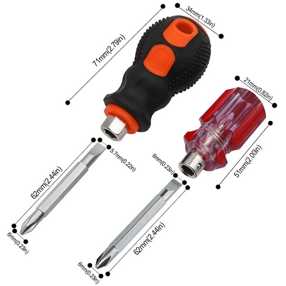 Beschreibung Features: * M agnetic Design: This screwdrivers f eature m agnetic head design, allowing for easy and efficient use during your repair projects. *Multifunctional Tools Kit:This mini screwdriver serves as both a screwdriver and a hammer, making it a versatile tool for various home repair tasks. * Material:Made from 55# steel material, this screwdriver ensures a long service time, allowing you to rely on it for your repair needs. *Small and Lightweight:With its compact size and lightweight design, this screwdriver is easy to carry and handle, making it convenient for any repair situation. *Practical and Long-lasting:Designed to be practical and long-lasting, this screwdriver is a reliable tool that will withstand frequent use and provide effective results. Specifications: *Product Name:Magnetic Cross Shaped Head Screwdriver *Material:55# Steel+ ABS/PVC Handle *Styles: for Crystal Dual Purpose,Turnip Head Dual Purpose(1pc/style) *Size:Approx. for Crystal Dual Purpose,Turnip Head Dual Purpose (Total Length) for Crystal Dual Purpose:78mm Turnip Head Dual Purpose:96mm *Weight:Approx. for Crystal Dual Purpose,Turnip Head Dual Purpose for Crystal Dual Purpose:36g Turnip Head Dual Purpose:57g *Color:As Shown Package Content: 2 * Screwdrivers Note: 1. The real color of the item may be slightly different from the pictures shown on website caused by many factors such as brightness of your monitor and light brightness. 2. Please allow slight manual measurement deviation for the data. POLICES Shipping Payment WARRANTY We only ship to confirmed ebay Order addresses. Please comfirm that your Order address is in line with your shipping address. Please kindly note that the c ombined shipping is not provided because the shipping fee is calculated by weight. Also, the each additional item means exactly the the same color and size. It takes about 7 -15 working days to US; about 10-30 working days to other countries. Transit time may be a little delayed because of the bad weather and customs inspection . If you do not receive your item within 30 working days since payment finished, please contact us immediately for further assistance. Payment must be completed within 5 days. If you have any problems about payment, please contact us via ebay message. We strive for 100% customer satisfaction! Positive Feedback is very important to us. If you have any questions, p lease feel free to contact us via "Ask seller a question" . We will reply your email within 24 working hours.