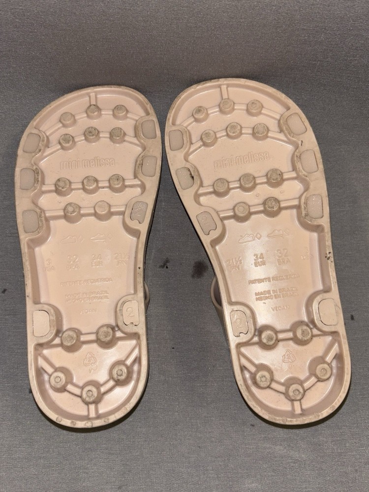 The Mini Melissa Girls Strappy Sandals in size 3 are perfect for young girls who love pink and a subtle sparkle. These sandals feature a hook and loop closure for easy wearing, a low top style for comfort, and a flat heel for all-day wear. Made of rubber, they are ideal for casual or travel occasions during the summer and spring seasons. The Mini Melissa brand ensures quality and style that little ones will love.