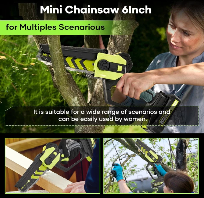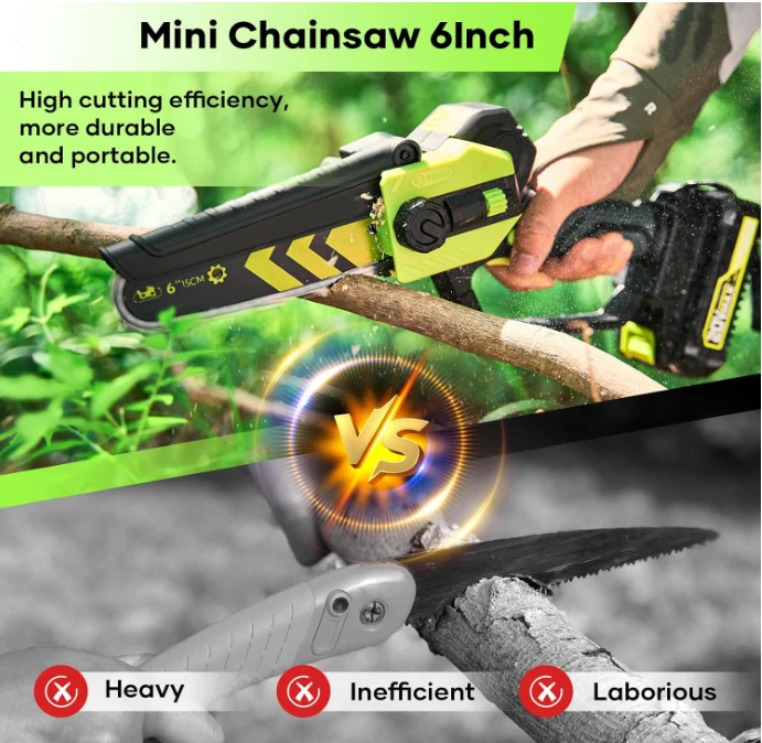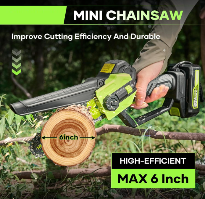 $ 100.9Mini 6-Inch Cordless Electric Chainsaw - Handheld Battery-Powered Tree Pruner