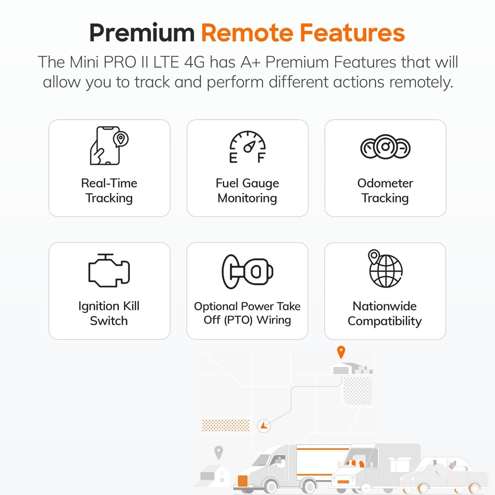 Mini PRO II LTE 4G GPS Tracker for Vehicles, Motorcycles, Trucks, Trailers, w/Remote Killswitch, Real-Time Tracking, Compact Weatherproof Car Tracker, Hardwired, Easy Setup, No Contract Product Details Model: MINI PRO II LTE Brand: TrackmateGPS MPN: MINI PRO II LTE UPC: 750783731478 EAN: 0750783731478 Brand: TrackmateGPS Special Feature: Real Time Tracking Connectivity Technology: Cellular Supported Application: GPS Specific Uses For Product: New drivers tracking, Teenagers tracking, Employees tracking, Deliveries tracking, Anti-theft purposes See more Product Dimensions: 3.4 x 3.4 x 0.5 inches Item Weight: 1.76 ounces Item model number: MINI PRO II LTE Connectivity technologies: Cellular Special features: Real Time Tracking Other display features: Wireless Whats in the box: Battery Manufacturer: TrackmateGPS Date First Available: July 8, 2019 Precise Real-Time Tracking Monitor location and routes in real time for vehicles, motorcycles, trailers, or equipment. Perfect for tracking teenage drivers, employees, or valuable assets. Compact & Discreet Design At just 3.4 x 2.2 x 0.5 inches and 1.76 oz, this low-profile car tracker is easy to conceal, offering effective monitoring without drawing attention. Remote Killswitch Control Includes a hardwired ignition relay for disabling the vehicle remotely, enhancing anti-theft security and giving you more control over your assets. Flexible Plans, No Contract Choose from 5 affordable monthly plans starting at $9.99, with no activation or cancellation fees. Platinum plan updates as often as every 5 seconds. Durable & Weatherproof Built to withstand rain, snow, and extreme conditions. This weather-resistant GPS tracking device ensures reliable performance year-round.