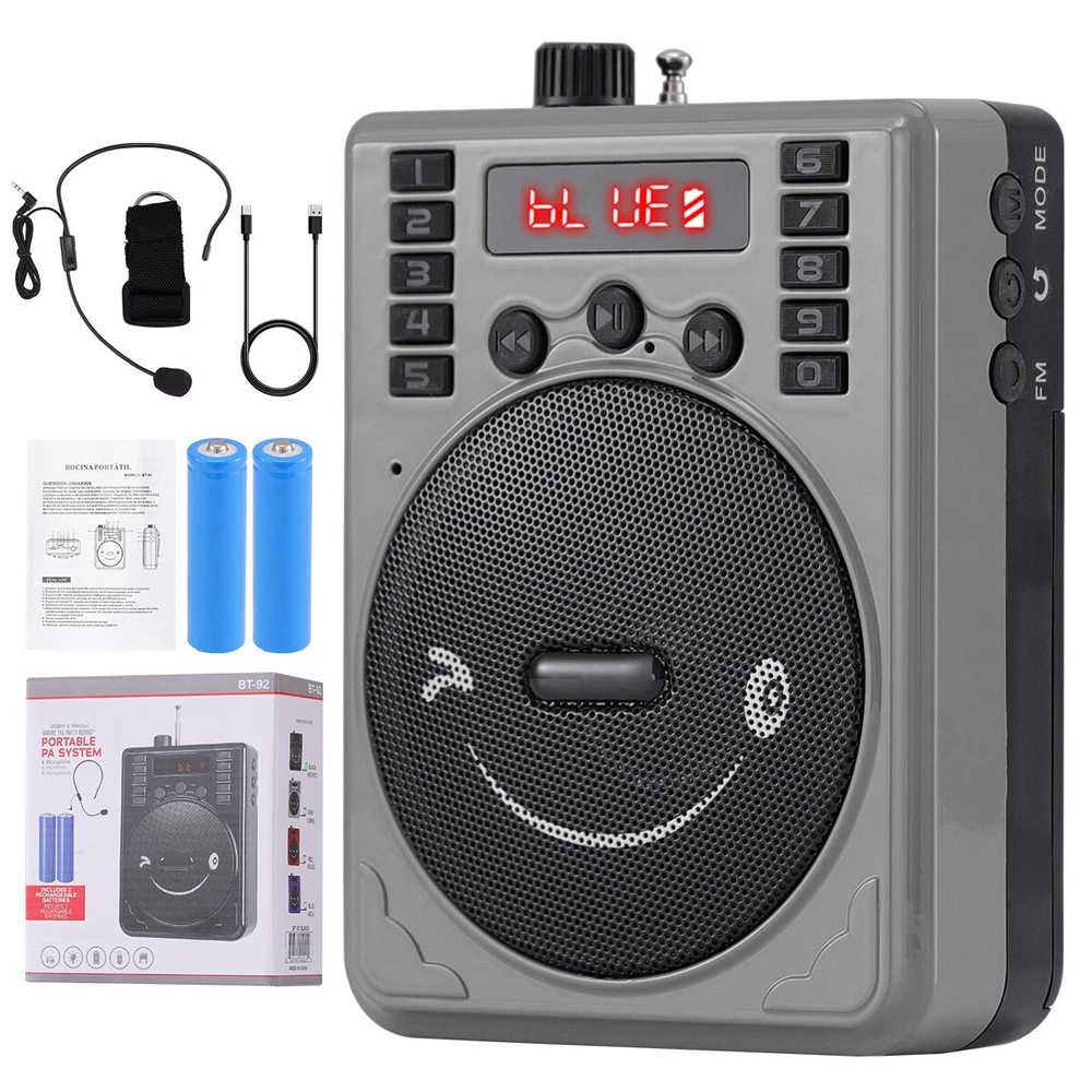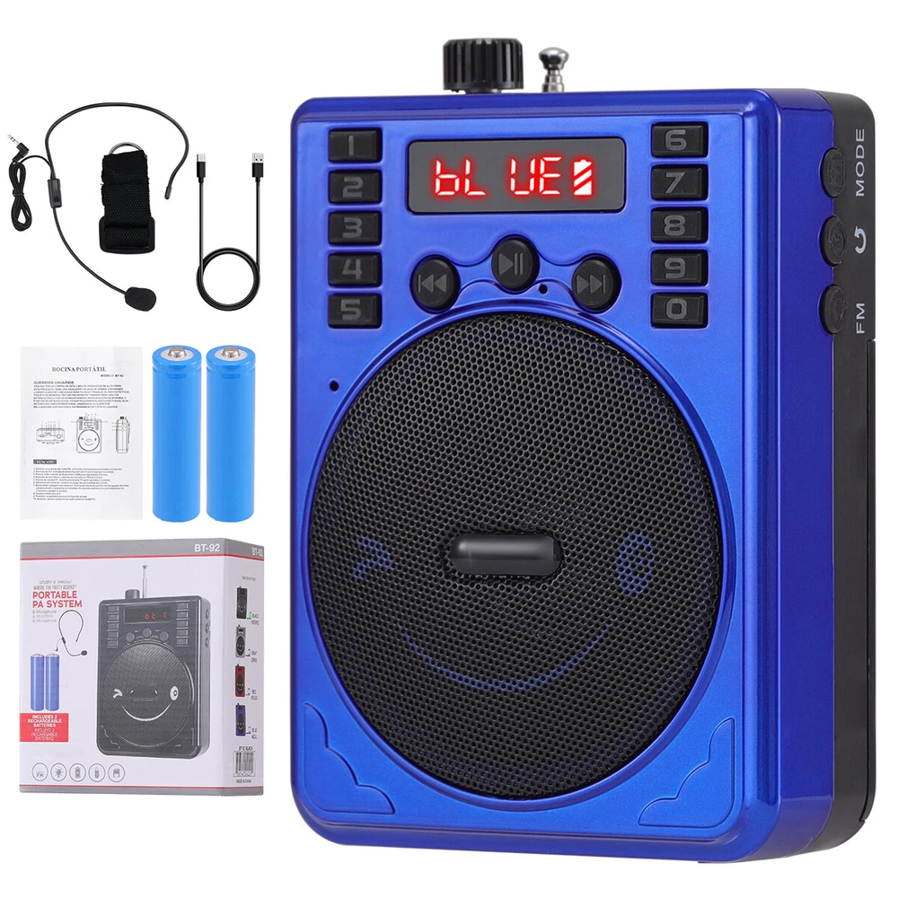 Mini Portable Rechargeable Wireless Amplifier Speaker w/Wired Microphone Headset Feature: Material: ABS Color: Gray/Red/Black/Blue Bluetooth model: BT-92 Input voltage: DC5V 0.5A Frequency response: 80HZ-- 12Khz Output power: 3w Impedance: 4Ω Working voltage: 3.5v-4.7v Charging time: 2-3h Available time: 4-6h Function: Bluetooth BT connection, U disk, FM, TF card Battery model: 18650 3.7V 800MAH*2 Package Include: 1 X Wireless radio amplifier 1 X Wired microphone 2 X 18650 battery (800MAH) 1 X TYPE-C charging cable 1 X Rope for hanging 1 X Instructions in English Contact us: Payment: Shipping: Warranty Return Contact us: We have always been trying to provide the best service and reliable products for every customer, however, accident may happen sometimes, please contact us to resolve any issue before leaving a negative feedback. Payment: 1. All payments must be prepaid before shipping. 2. We only accept payment via PayPal. Please kindly check if you can do the payment via PayPal before placing an order. Shipping: 1. Item will be shipped same business day if paid 4 pm EST 1 pm PDT (except weekends and holidays) and shipped from US. 2. Orders from the United States will all be shipped out via starnding shipping or economy shipping. The shipment usually takes 3-7 business days(Saturday and Sunday excluded), if you need the item urgently, please contact us for detail before purchase. Orders from overseas will be shipped via DHL Express, 3-5 business days. 3. Local pick up is not available. Warranty . The warranty shall not apply to the following circumstances: a) Damage caused by undue ware&tear, misuse, improper installation or operation, neglect, accidents. b) Damage caused by natural disaters, flood, fire, lightning or pollution. c) If item was opened, any parts removed or repaired by any unauthorized person. Return (1).We stand behind our items and offer 60 days warranty. All items are in brand new condition unless specified otherwise elsewhere in the description. (2).All returns - defective or otherwise - have to be preauthorized. Please contact us to get an authorization and returning address before sending the item back.If an item is returned because of an undeliverable shipping address, buyer agrees to pay the cost for re-shipment. (3).Please note that If the return/replacement is not a result of our mistake (not defective or wrong item), the buyer is responsible for return shipping, as well as a 20 percent restocking fee. (4).Replacement or refund will be made upon receipt of the returned item. If you do not want to wait for the replacement, you can just reorder one and then send the first one back for a refund.