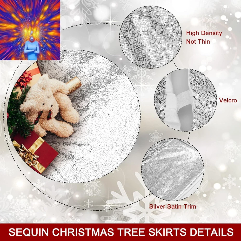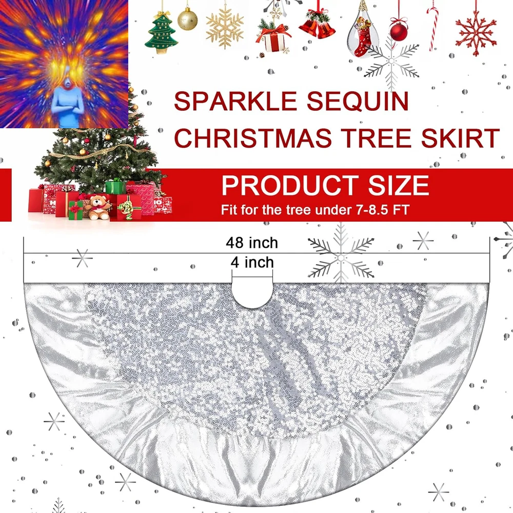 Store New Arrivals Add to Favorite View Feedback Contact Mini Silver Christmas Tree Skirt 24 Inch, Small Christmas Tree Skirt with Glitter Satin Trim - Xmas Tabletop Tree Skirt for 4 Ft Pencil Tree Silver and Gold Christmas Decorations Description Closure Type Velcro Item Diameter 48 Inches Color Silver Pattern Solid Fabric Type Sequins Material Sequin Material Type Sequin Size 48 inch ✅【Good Quality】 --- This silver tree skirt which fabric covered with shiny 3MM round sequins. It also has glittery silver satin trim on the edge of the skirt. Lights reflect well off the shiny sequins, which adds more elegant and gorgeous feeling to the whole decoration. ✅【Tightly Sewn Sequins】 --- The smooth satin trim avoid falling sequins. Full dense sequins embroidered on mesh fabric, making the shimmer sequin fabric look more fancy in light. Light Reflects well off the sequins, adds elegance charming to any joyful occasion. ✅【48 inch Silver Tree Skirt】 --- 122cm / 48" large size. Most Christmas trees can get through the hole. So you do not need to worry that your Christmas tree will be stuck. Perfect for any size tree from 7' small to 8' large trees, from traditionally decorated to whimsical artificial Christmas tree. ✅【Easy to Install】 --- Three velcro at the opening to secure bling tree skirt around and in place like a dress underneath the Christmas tree. ✅【Multifunctional Use】 --- Glitter Tree Skirt Suitable for all kinds of celebrations, Christmas decoration, Thanksgiving Day, weddings, birthday parties, Hanukkah decoration, bridal and baby showers, birthdays, classic candy buffets, dessert tables and more. Our silver Christmas sequin tree skirt adds elegance and luxury to the festival. Product Description Ivarunner Christmas Tree Skirts This Christmas Sliver Tree Skirt --- Is 48 Inches In Diameter And Made Of High-Quality Polyester Laminated Ripstop Fabric Ensures Long Term Use, Keeps Colors Bright And Long Lasting Without Fading, Giving You A Different Kind Of Holiday Experience. 1. Glossy And Textured Surface, Plush Fabric At The Bottom Protect Your Floor With A Great Look, Soft, Lightweight, Tactile, Easy To Clean And Will Last A Long Time 2. There Are Three velcro At The Opening To Hold The Christmas Tree Skirt So That It Surrounds And Secures Under The Christmas Tree, Easy And Quick To Install, For Christmas Tree Decoration, Adding Warm Atmosphere Of The Holiday Season And Embellishing Life. Ideal Christmas Decoration: # You Can Put Your Favorite Gifts On The Tree Skirt To Add More Festive Features. # When Your Children And Pets Play On It, Everything Will Become Warm And Sweet. # Best Wishes On This Holiday Season Wishing You Peace And Happiness Through Christmas And The Coming Year! ABOUT US We offer the best prices around on high quality products. Our E-store includes media such as books, movies, music and games while offering electronics, toys, sporting apparel, clothing, tools, general home, garden items and more. SHIPPING We are always working hard to ensure your package arrives as soon as possible. Please understand that some factors like weather, high postal traffic, and the performance of shipping companies are outside of our control. We offer free shipping to the lower 48 states and ship within 2 business days of payment, usually sooner. We do not accept P.O. Boxes. Please provide a physical address. For shipping outside of the continental USA, we only use eBay's Global Shipping Program.The item is shipped to KY and then sent to the rest of the world. International customers are responsible for all duties and taxes. Continue to check out in order to calculate costs for shipping the item to your country. Messages regarding eBay's Global Shipping Program MUST be directed at eBay EXCLUSIVELY. RETURNS We offer a 30-Day Return Policy on items which you are not completely satisfied with. You have the option for a full-refund or an exchange of the item. No returns are available on items shipped outside of the USA. PAYMENT We accept PayPal. CONTACT US This page content is yet to come Please ad us to your favorite seller and visit again later Thank You CUSTOMER SATISFACTION We try our very best to make sure every customer is completely satisfied. If there's a problem, message us! We're happy to help. WE ACCEPT