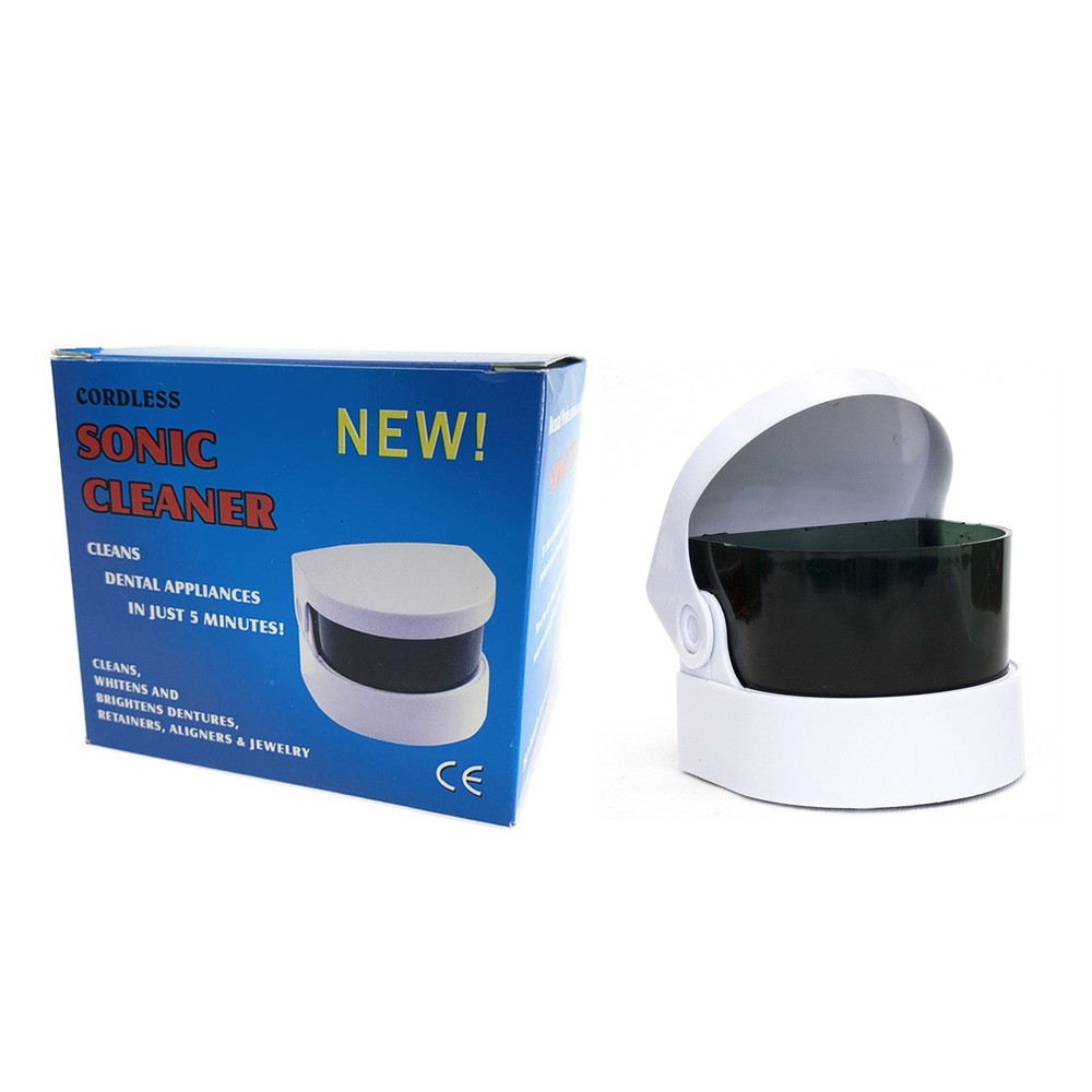 Product Description Specifications: Condition: Brand New Material: Plastic Color: As Shown Features: ON / OFF switch, easy to use Powered by 2 x AA batteries (NOT Included) Product size: 8cm in height, 9 cm in width Container size: 4 cm in height, 8.2cm in width Gets orthodontic appliances sparkling clean. Cleans deep where brushes can't reach. Use with any denture or retainer cleaner. Great for both professional cleaning and personal use. Professional jewelers use it to deep clean fine jewelry. Achieve professional results clean dentures, retainers, aligners, jewellery and old coins in minutes! NO need to soak overnight! Removable container for easy use and maintenance Cleans, whitens and brightens dentures, retainers, aligners & jewelry. Package Includes: 1 x Compact Cordless Sonic Cleaner(battery is not included) Notes: Other accessories demo in the picture is not included. Please allow slight dimension difference due to different manual meaurement. Due to the light and screen setting difference, the item's color may be slightly different from the pictures. Shipping Returns Contact Us Payment 1. Items sent from US warehouse. 2.Receiving time = Processing time + Shipping time 3. Processing Time: Around 1-2 business Days 4. Shipping Time: 3-5 business day it may have a little delay during some holiday (such as Christmas),any problem ,please feel free to contact 1. 30 days warranty from the purchased date. Please contact us via email before returning the defective item. 2.Our warranty does not extended to any product that are physically damaged or that are not under normal operating conditions as result of misuse or improper installation on the buyer/user's part. 3.Return items should include the original packaging and all accessories. buyers MUST contact us for the returning address. 4.In all cases, buyers pay shipping fees at their own cost to return products for exchange or refund. We will be responsible for the postage of replacements. Refund will be made upon receipt of the returned item. Pls contact us if you have any problems,we will try our best to solve for you We accept all verified payment from eBay. Shipping 1. Items sent from US warehouse. 2.Receiving time = Processing time + Shipping time 3. Processing Time: Around 1-2 business Days 4. Shipping Time: 3-5 business day it may have a little delay during some holiday (such as Christmas),any problem ,please feel free to contact Returns 1. 30 days warranty from the purchased date. Please contact us via email before returning the defective item. 2.Our warranty does not extended to any product that are physically damaged or that are not under normal operating conditions as result of misuse or improper installation on the buyer/user's part. 3.Return items should include the original packaging and all accessories. buyers MUST contact us for the returning address. 4.In all cases, buyers pay shipping fees at their own cost to return products for exchange or refund. We will be responsible for the postage of replacements. Refund will be made upon receipt of the returned item. Contact Us Pls contact us if you have any problems,we will try our best to solve for you Payment We accept all verified payment from eBay. powered by