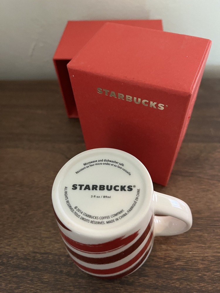 Enjoy your favorite hot beverage with a touch of holiday cheer using this Mini Starbucks 2014 Candy Cane Cup Mug. With a demitasse espresso capacity of 3 oz, it's perfect for your morning coffee or evening tea. The mug features a colorful candy cane stripe theme that adds a festive touch to your collection or workspace. Crafted by Starbucks, this original multi-color mug was created in 2014 and is an ideal find for collectors and holiday enthusiasts alike. It is made in China and showcases the quality and style that the brand is known for. Add this unique piece to your Starbucks cup collection or give it as a thoughtful gift this holiday season.