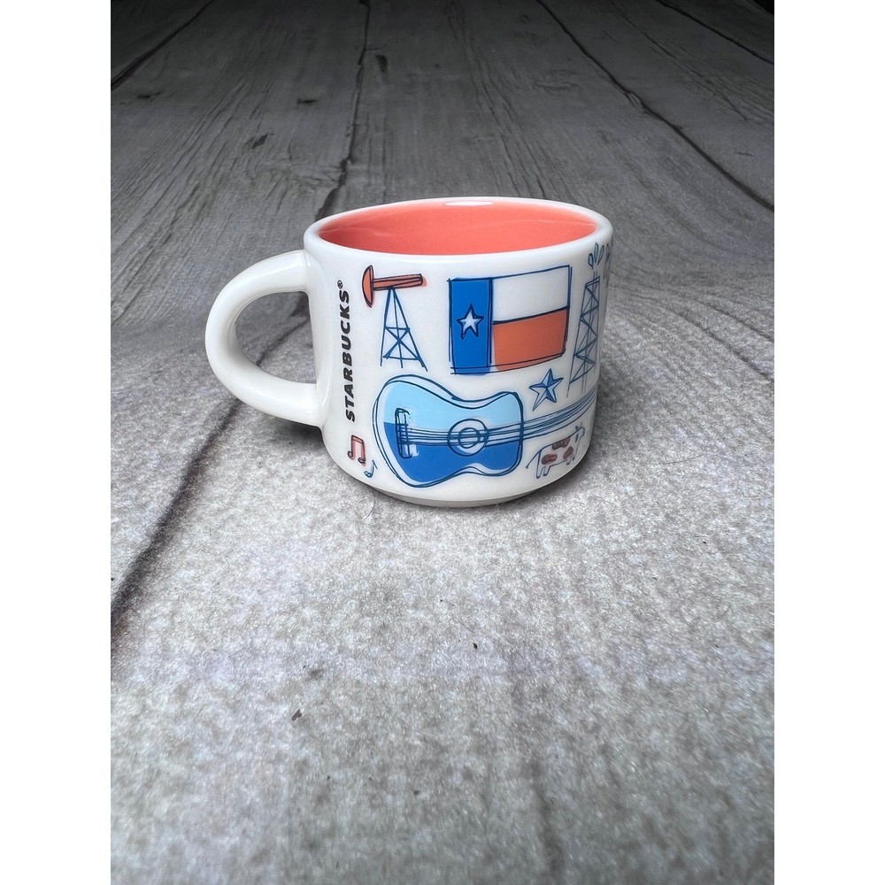 Capture the spirit of the Lone Star State with this vibrant Starbucks Been There Series mug, showcasing iconic Texas imagery. The cheerful coral interior promises a delightful start to your day, making every sip a miniature vacation. Perfect for enjoying your morning coffee or evening tea, this mug brings a touch of Texas charm to any kitchen. Type: Coffee Mug Set Includes: Mug, Cup, Coffee Mug Theme: Travel & Places, Letters, Numbers & Words, Music, Food & Drink Pattern: Pictorial Material: Porcelain Occasion: All Occasions Service For: 1 Features: Dishwasher Safe, Microwave Safe Shape: Round Style: Vintage/Retro Item Width: 3 in Keywords: Starbucks mug, Texas souvenir, collectible mug, travel mug, coffee cup, tea cup, kitchen decor, gift idea, cowboy hat, Texas flag, country music, oil rig, boot, guitar