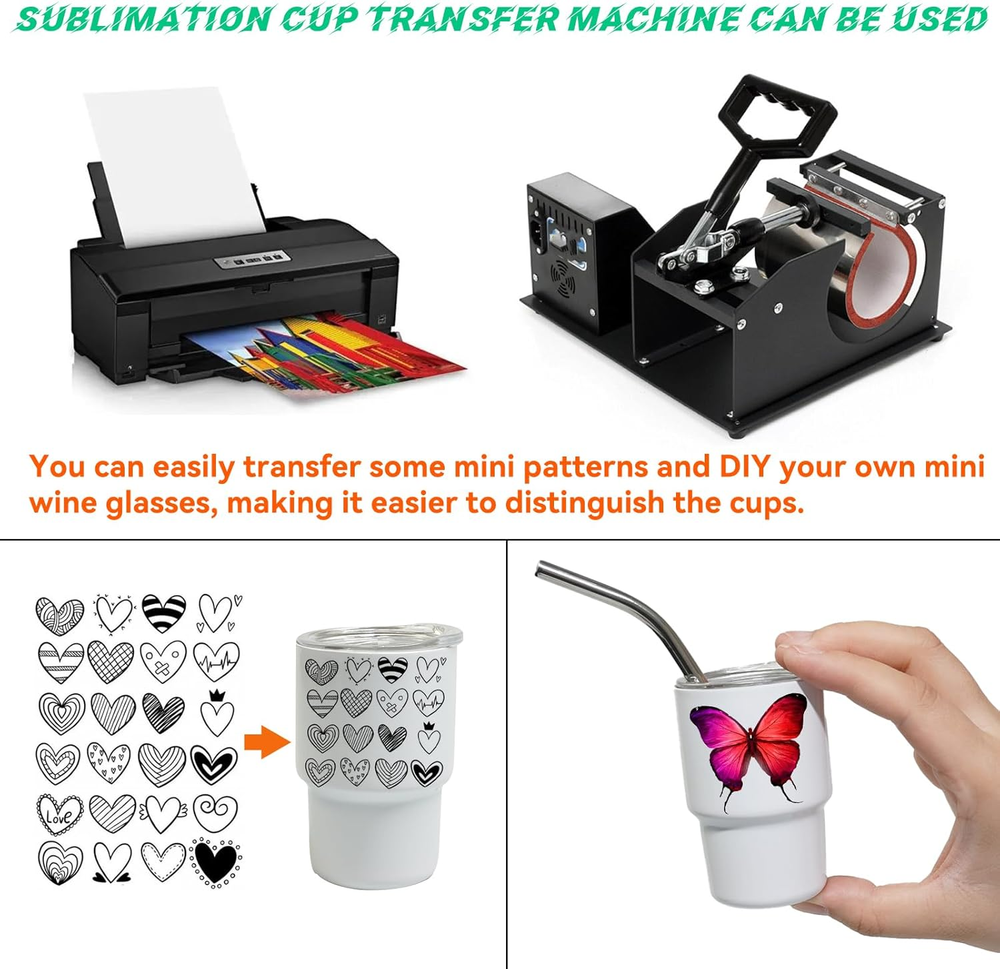 Mini Sublimation-Ready Double-Layer Metal Tumbler Shot Glass with Straw