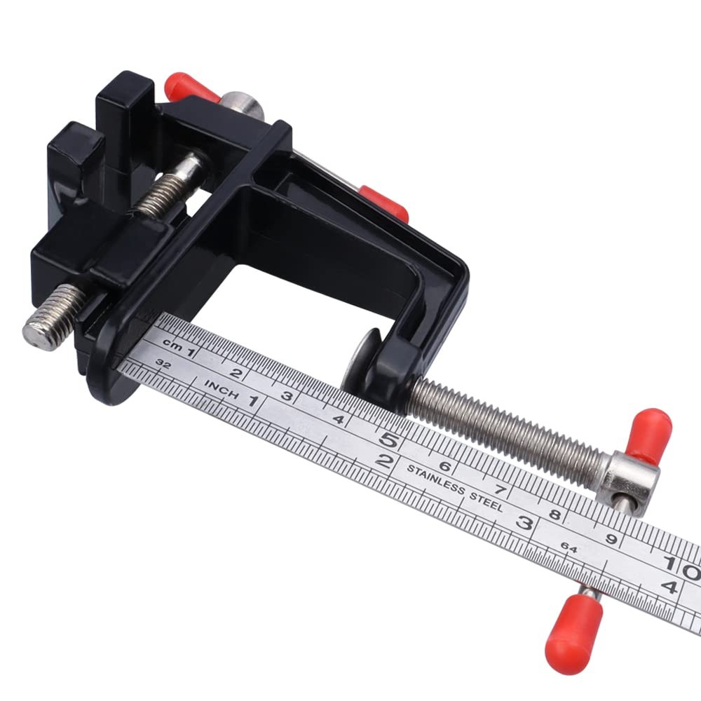 Eyech DIY Mini Bench Vise Small Table Clamp Production Description: ✔A very useful tool for you to make your diy crafts. ✔It is smaller than you would think but still very useful,they said that is like a third pair of hands when assembling models etc. ✔Perfect small tool for holding small parts, electronics, hobby work, jewelry, model makers and so on. ✔Replaceable top machinist jaws and built-in pipe jaws are grooved tooth designed for enhanced grip and higher clamping force. Package List: 1 * Bench Clamp Package include: 1 x aluminum vice clamp, mini size and portable, handheld use.can installed at the edge of all kinds of desktop, maximum fixed thickness 1.38"(35mm) Mini vise body made of cast aluminum, light weight and durable,a handy miniature vise clamp. The mini table bench vise ideal for holding small parts in jewelry carving, watch repairing, model making, electronics repairing, hobby, home and work-bench, and etc. Mini drill press vise flat clamp table bench with 4 hard adjustable plastic pins for minimizing the risk of slipping and scratching. Swivel lock clamp for fixing small items, such as olives, walnuts, bodhi, small Indian stone and so on, good fixed effects. And can clamp down any wooden block for sanding,grinding, detail,drilling,carving,chiseling,and much more.