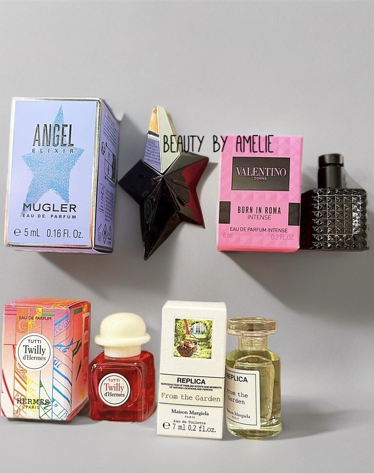 MINI Travel Size HIGH-END Perfume for Women Valentino Dior Replica Lot of 4PC. Mugler Angel Elixir - 5 ml EDP Hermes Tutti Twilly - 7.5 ml EDP Replica From the Garden - 7 ml EDT Valentino Born in Roma - 6 ml EDP Intense