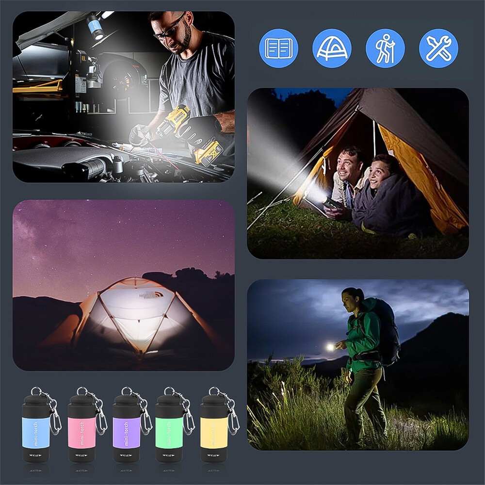 Features: Colorful mini flashlight, exquisite and compact, easy to carry Multiple charging options USB integrated design. USB charging ,Waterproof life,Rotary switch. Specifications: Material: ABS Size: 5.3cm*2.2cm Battery: 55mAh Color: White,Yellow,Red,Purple,Green,Blue,Black Note: There could be some slight differences in the color tone of the pictures and the actual item. Please allow 1-2mm differs due to manual measurement, thanks. Package Included: 1pc x LED flashlight No Retail Box.Packed Safely in Bubble Bag.