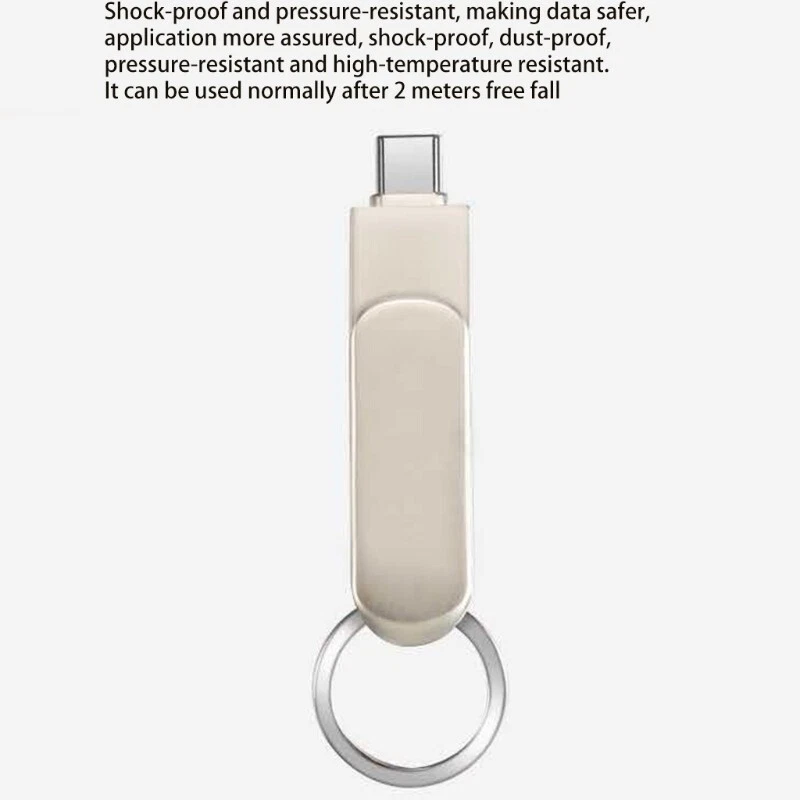 Features: brand new and high quality The USB C 32/64/128GB with the USB and Type-C and android- photo for computer phones. You can easily transfer files and data between smartphones, tablets and computers efficiently save file transfer for time and greatly improve work efficiency. The usb provides up to 30 s-100 s of read speed and 20-80 s of write speed, and allows you to transfer large files from usb less for time. Solid shockproof and electromagnetic. Support various types of operating systems. 360° rotation protecting design that prevent losing, and 90 ° stuck point design avoids the rotates randomly. Specifications: Type: USB/Type C/Android-3 in Disk Material: Metal Color: As Shown Product Type: Disk Size: Approx 5.4x1.5cm/2.12x0.59in Memory:32G/64G/128GB (optional) Package Includes: x Disk note: Due to the problems of lighting effects and shooting angles, there will tolerances in the product, please understand. Please allow 0-1cm error due to the manual measurment.