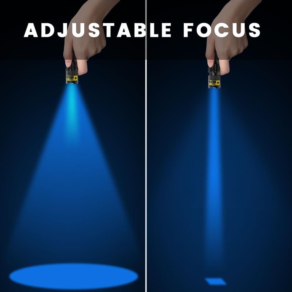 1. This mini UV flashlight is a game-changer! Super compact and easy to carry, yet powerful enough to detect counterfeit bills, pet stains, and even hidden security marks. The adjustable focus is a nice touch, letting me zoom in for precision or widen the beam for broader coverage. The aluminum body feels sturdy, and the 365nm wavelength works perfectly for checking fluorescent materials. Only downside is it doesn’t include batteries, but otherwise, it’s a must-have for anyone needing UV detection on the go. Highly recommend!