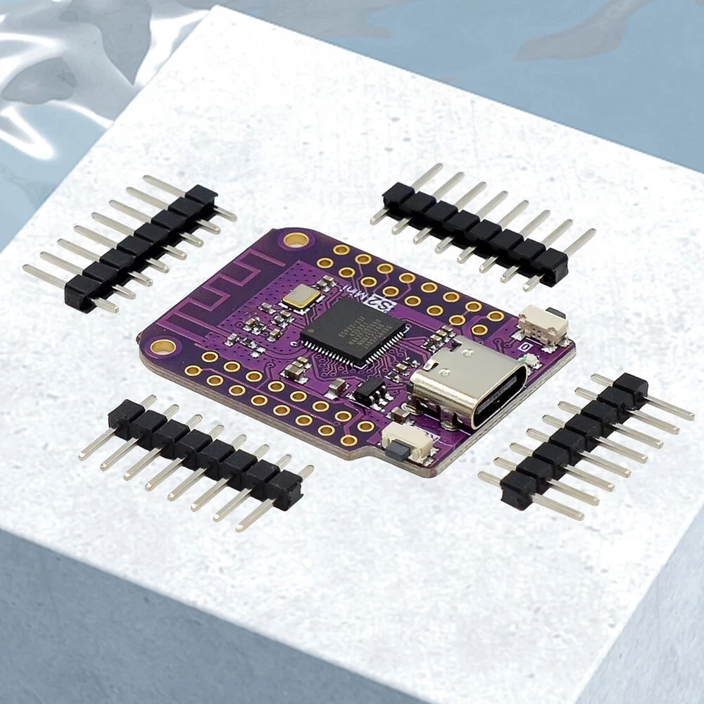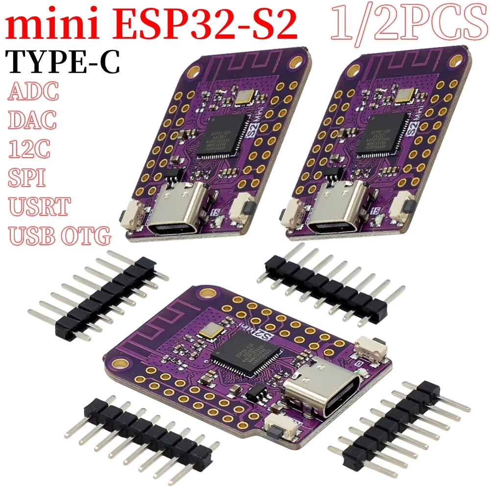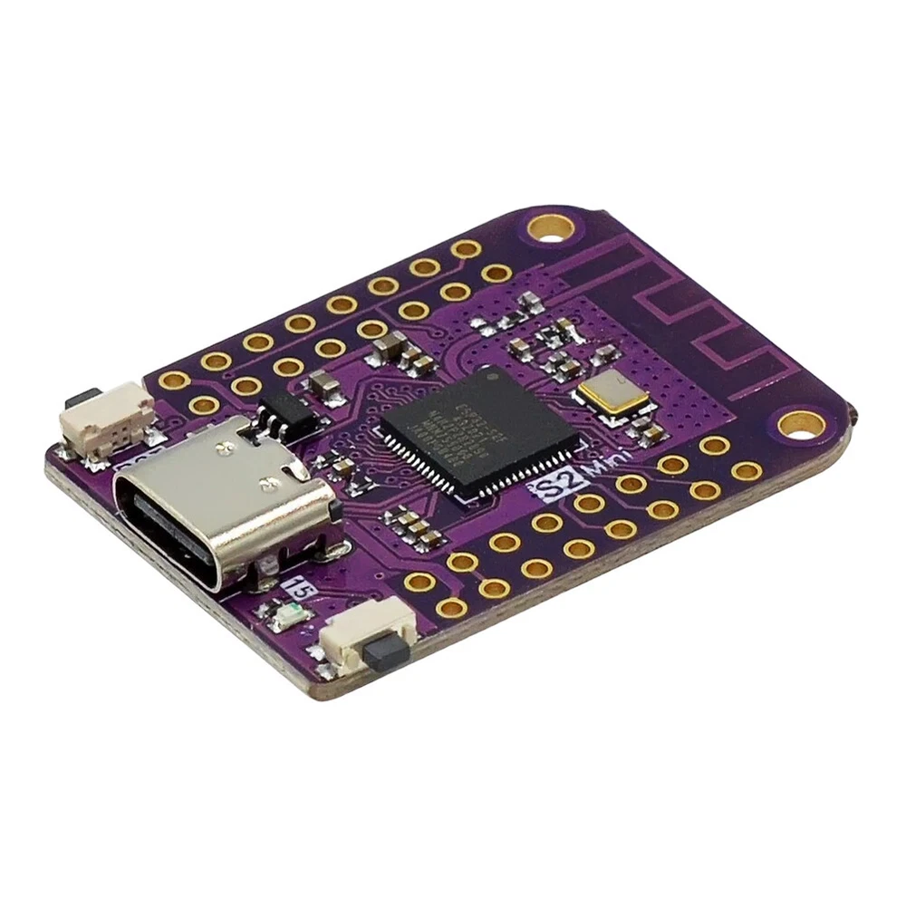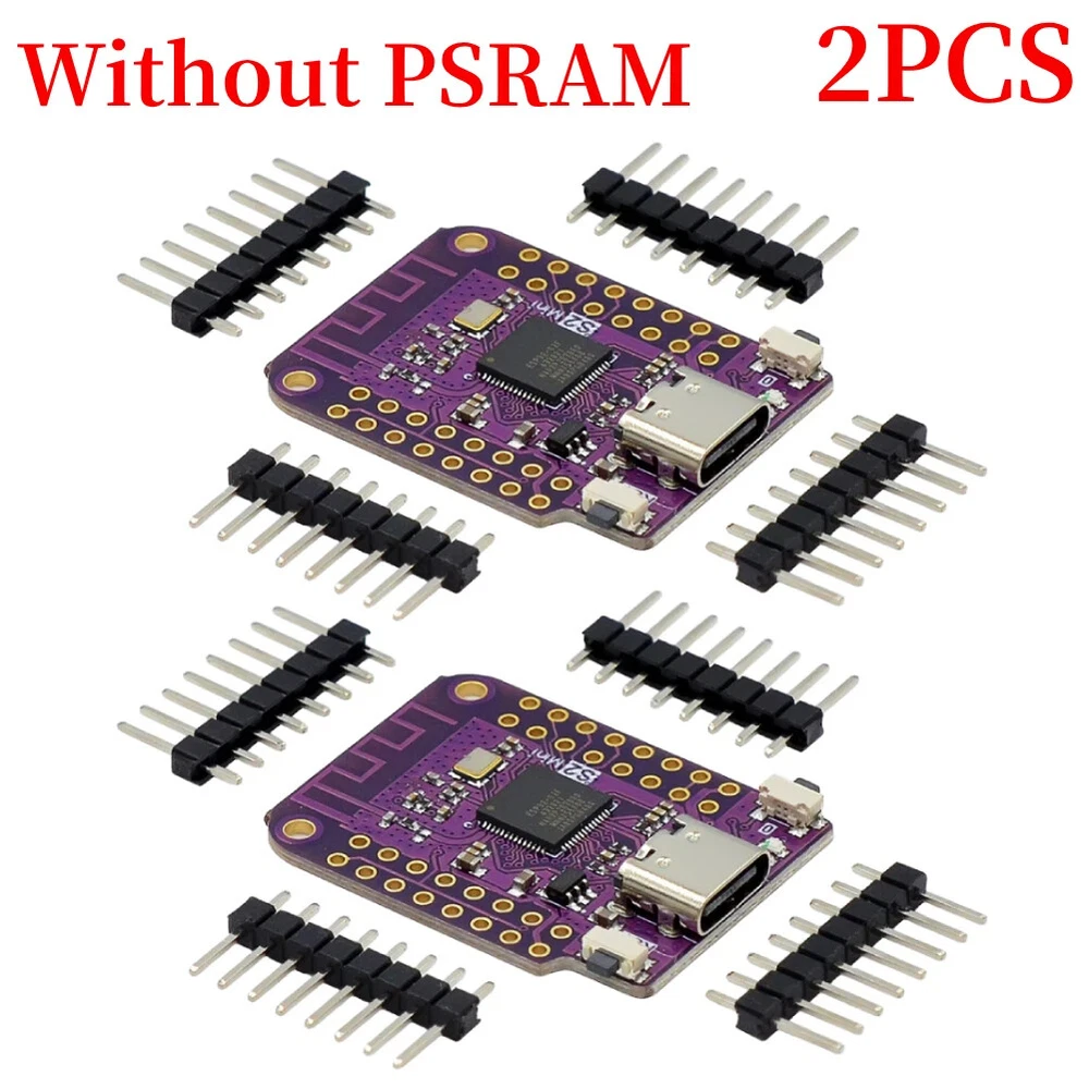 ESP32 S2 Mini V1.0.0 WIFI Board Based ESP32-S2FN4R2 4MB FLASH 2MB PSRAM Mini WIFI Module Internet Development Board for Arduino Features: 1.Powerful Processing Capability: Equipped with a high-performance processor, the S2 mini V1.0.0 wifi board offers robust computing and processing power, making it suitable for various complex applications. 2.Versatile Interfaces and Expandability: With 27 digital input/output pins supporting interrupts, PWM, and single-wire capabilities, along with ADC, DAC, I2C, SPI, USRT, and USB OTG interfaces, this mini V1.0.0 wifi IOT board provides abundant connectivity options for seamless integration with sensors, modules, and external devices, catering to diverse project requirements. 3.Wide Range of Applications: Widely used in IoT, embedded systems, smart homes, and automation control fields, this mini wifi module internet development board is well-suited for various application scenarios and project needs, offering flexibility and adaptability. 4.Reliability and Stability: Built with high-quality components and robust circuit design, this mini type-c wifi module board ensures exceptional reliability and stability, allowing for extended periods of stable operation without interruptions. 5.Compact and Portable: With its compact and lightweight design, the S2 V1.0.0 ESP32-S2 mini wifi board is easy to carry and transport, making it great for laboratory workbenches or on-site use, providing convenience and versatility. Specification: Origin: Mainland China Type: Module Condition: New Size: 35*25*4mm/1.37*0.98*0.16in Weight: 5g Product Description: 1. Based on ESP32-S2FN4R2 WIFI IC TYPE-C USB. 2. 27 digital input/output pins, all pins support interrupt/PWM/single line. 3. ADC,DAC,12C,SPI,USRT,USB OTG. Note: Due to the different monitor and light effect, the actual color of the item might be slightly different from the color showed on the pictures. Thank you! Please allow 1-2cm measuring deviation due to manual measurement. 1*Mini V1.0.0 WIFI Board (without PSRAM)/(with PSRAM)