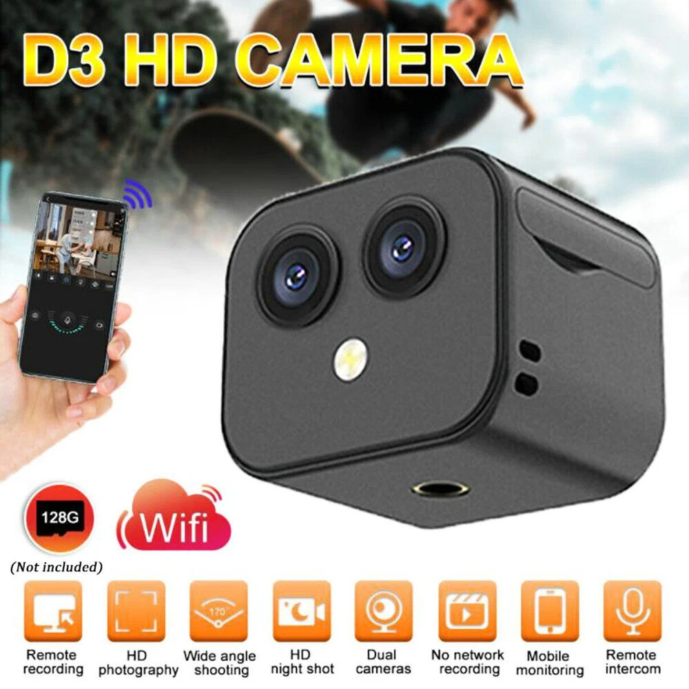 Product Description Features: Photo, video, recording, voice intercom, global Wi-Fi remote mobile phone tablet can be monitored, remote control LED night vision light to turn on, power failure can be powered by power bank or socket, or self-contained battery to continue recording, cut off Power recording, magnetic body, built-in hotspot connection, disconnected video recording, support 128G memory card and APP to save photos and videos to mobile phones Uses: Bicycle and motorcycle riding, outdoor extreme sports skydiving and jumping on the helmet, aerial camera, driving recorder, shop monitoring, warehouse video, real-time babysitting of the elderly (using mobile phones to remotely check the status of children and elderly at home when not at home) family living room room Monitoring, corridor monitoring, home door monitoring, office, travel, conference, classroom, pet care, can be magnetically attached to refrigerators, warehouse iron shelves, and other iron products Specifications: Name: D3 HD Camera Material: ABS Product color: Black Night Vision: Support WiFi remote control: support Two-way voice: support Video format: AVI Recording format: WAV Image encoding: M-JPEG Lens: telephoto lens 16 million pixels + wide-angle lens 170 degrees 16 million pixels (dual lens 32 million pixels) Video Resolution: 1280x720/ 1920x1080 fhd @ 30fps Support system: for windows xp/7/ for vista/8/10, for os x 10.4 and above, linux Battery capacity: 200mah Battery life: video 1-2H Charging interface: micro usb Charging voltage: DC-5V Charging time: 2 hours Storage method: TF card (maximum support 128GTF card)(TF card not included) Package Includes: 1 x Camera 1 x Stand 1 x Data Cable 1 x Lanyard Shipping 1. Items sent from US warehouse. 2.Receiving time = Processing time + Shipping time . 3. Processing Time: Around 1-2 business Days . 4. Shipping Time: 3-5 business day. it may have a little delay during some holiday (such as Christmas), any problem, please feel free to contact. Returns 1. 30 days warranty from the purchased date. Please contact us via email before returning the defective item. 2. Our warranty does not extended to any product that are physically damaged or that are not under normal operating conditions as result of misuse or improper installation on the buyer/user's part. 3. Return items should include the original packaging and all accessories. buyers MUST contact us for the returning address. 4. In all cases, buyers pay shipping fees at their own cost to return products for exchange or refund. We will be responsible for the postage of replacements. Refund will be made upon receipt of the returned item. Contact Us If you have any question, please e-mail us immediately, we will reply you as quickly as possible. We care about our valued customers, and will always try to help you. About Us We are committed to providing you with the best quality products and services. We hope your shopping experience is easy and enjoyable. Payment We accept all verified payment from eBay. You may also like 1:72 Scale US SBD-3 Dive Bomber Fighter Alloy Aircraft Model Military Plane NEW 45.57 USD 3.89 USD Lower Duct Hose for Shark Rocket True Pet Slim Vacuum HV300 HV322 320 380 380UK 9.95 USD 13Pack Metal 0.6-2.0mm 90mm Long Screwdrivers Repair Tools For Watchmakers Watch 15.04 USD Durable Abrasive Mounted Stone For Rotary Tools Grinding Stone Wheel Head Dremel 9.95 USD Generic Part Watch Balance Wheel Hairspring For ETA 2824-2 2834 2836 Movement F 6.35 USD 3.89 USD 20pcs Bronze Watch Parts Steampunk Cyberpunnk Cogs Gears DIY Jewelry Crafts 3.17 USD 3.89 USD powered by