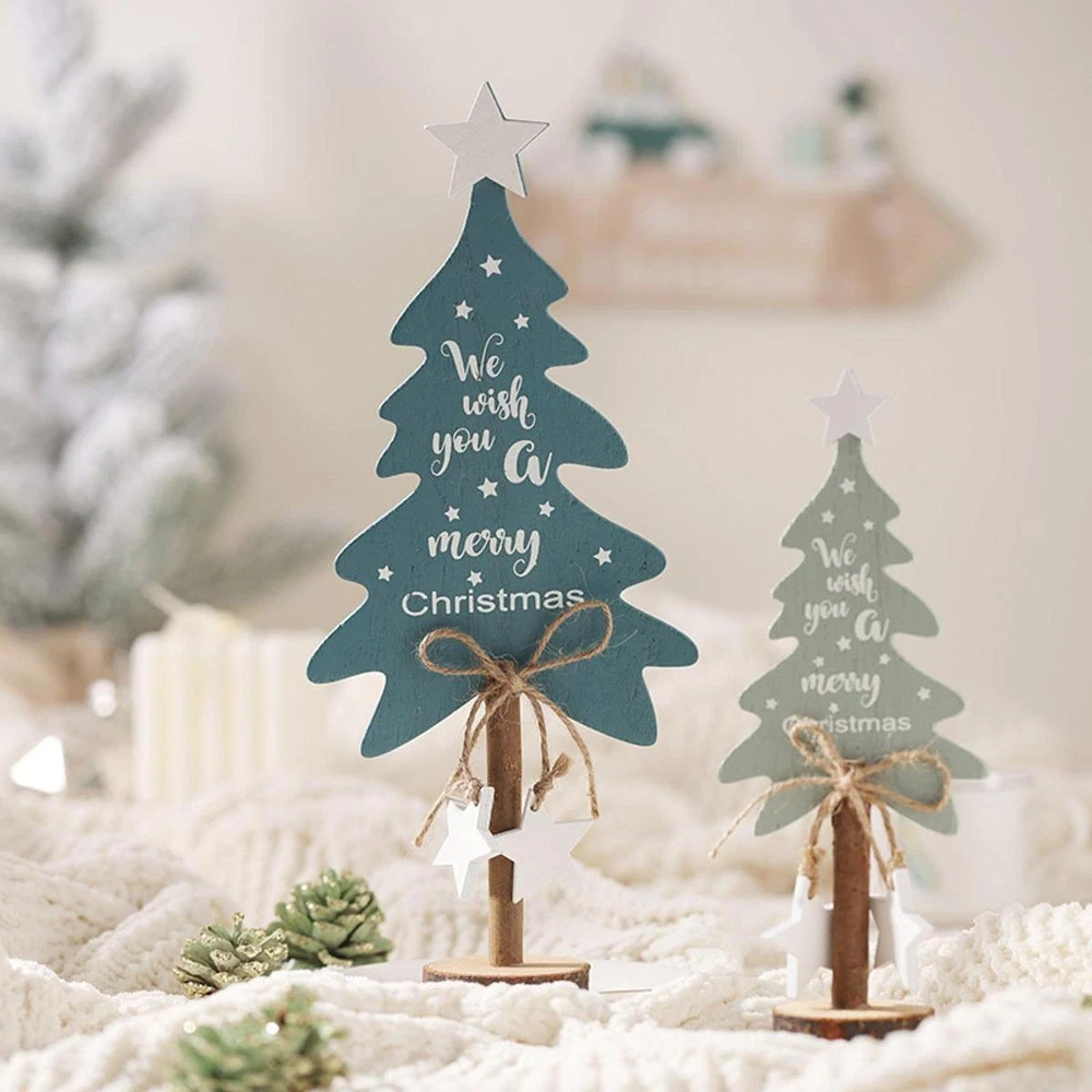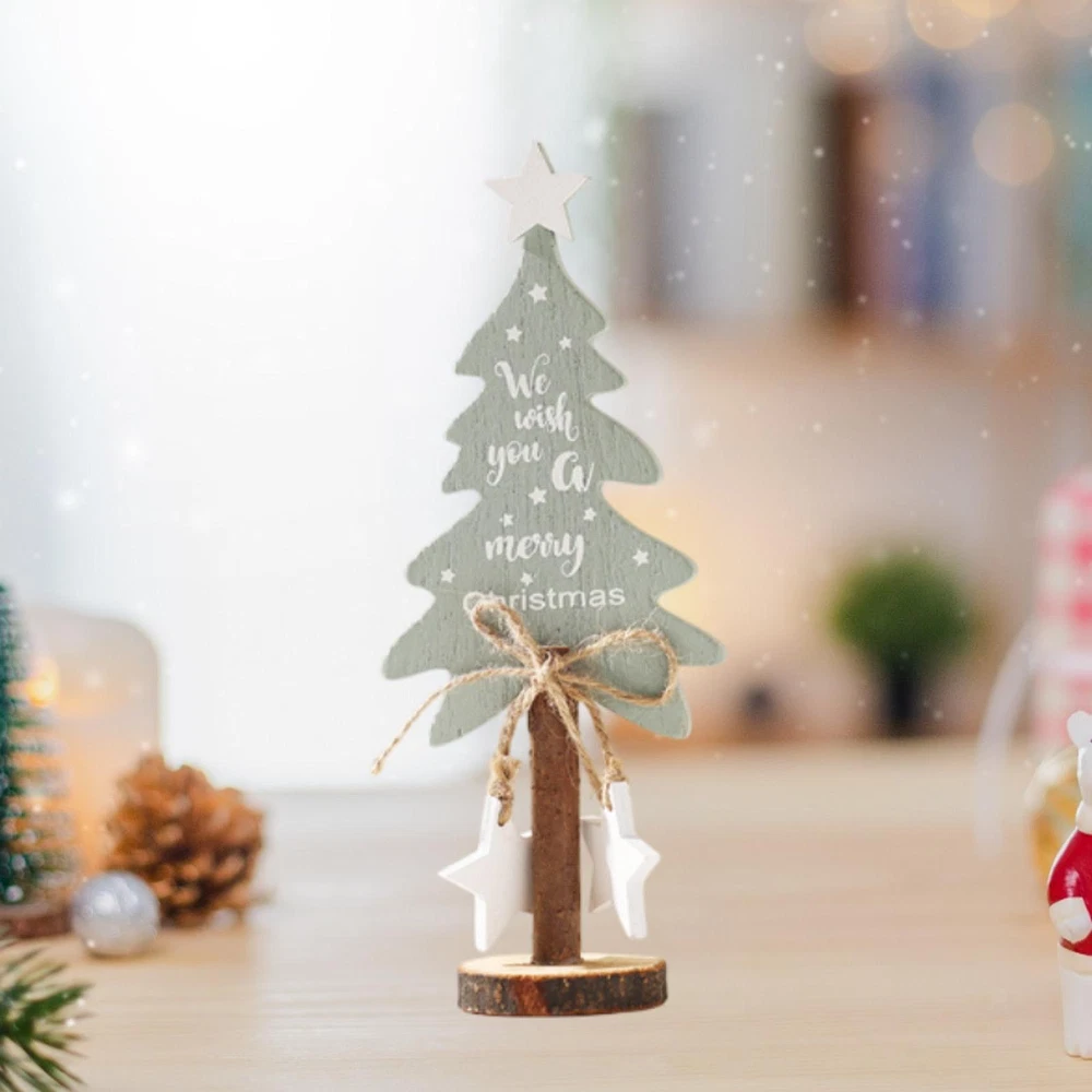 Mini Wooden Christmas Tree Desktop Holiday Decor Ornament