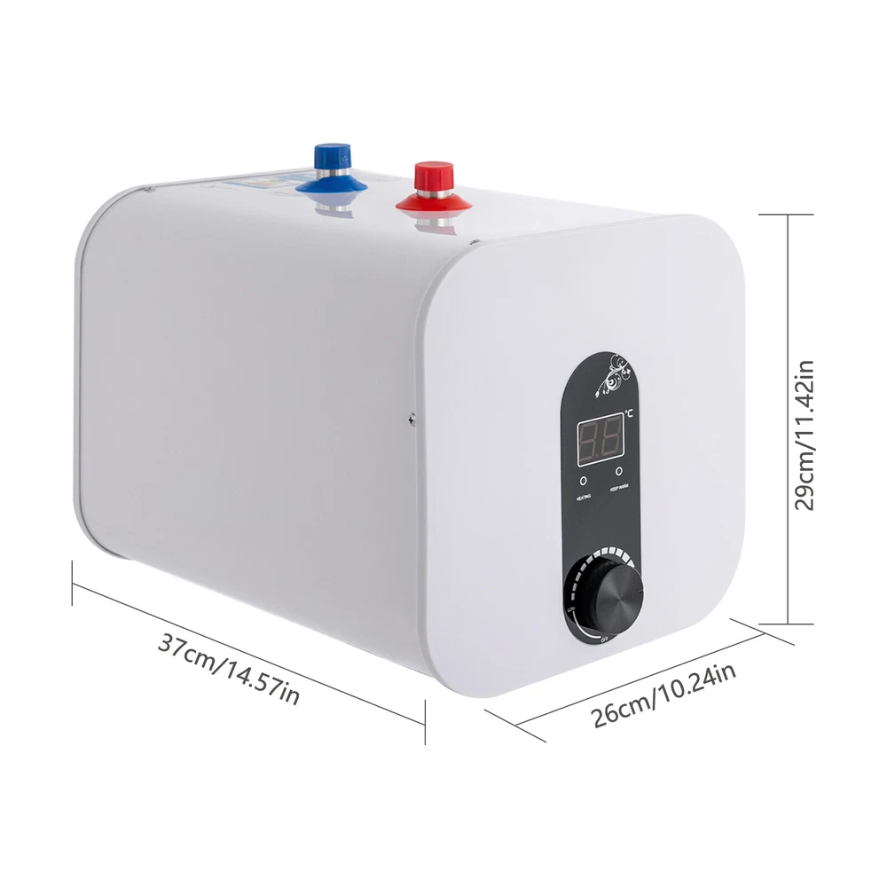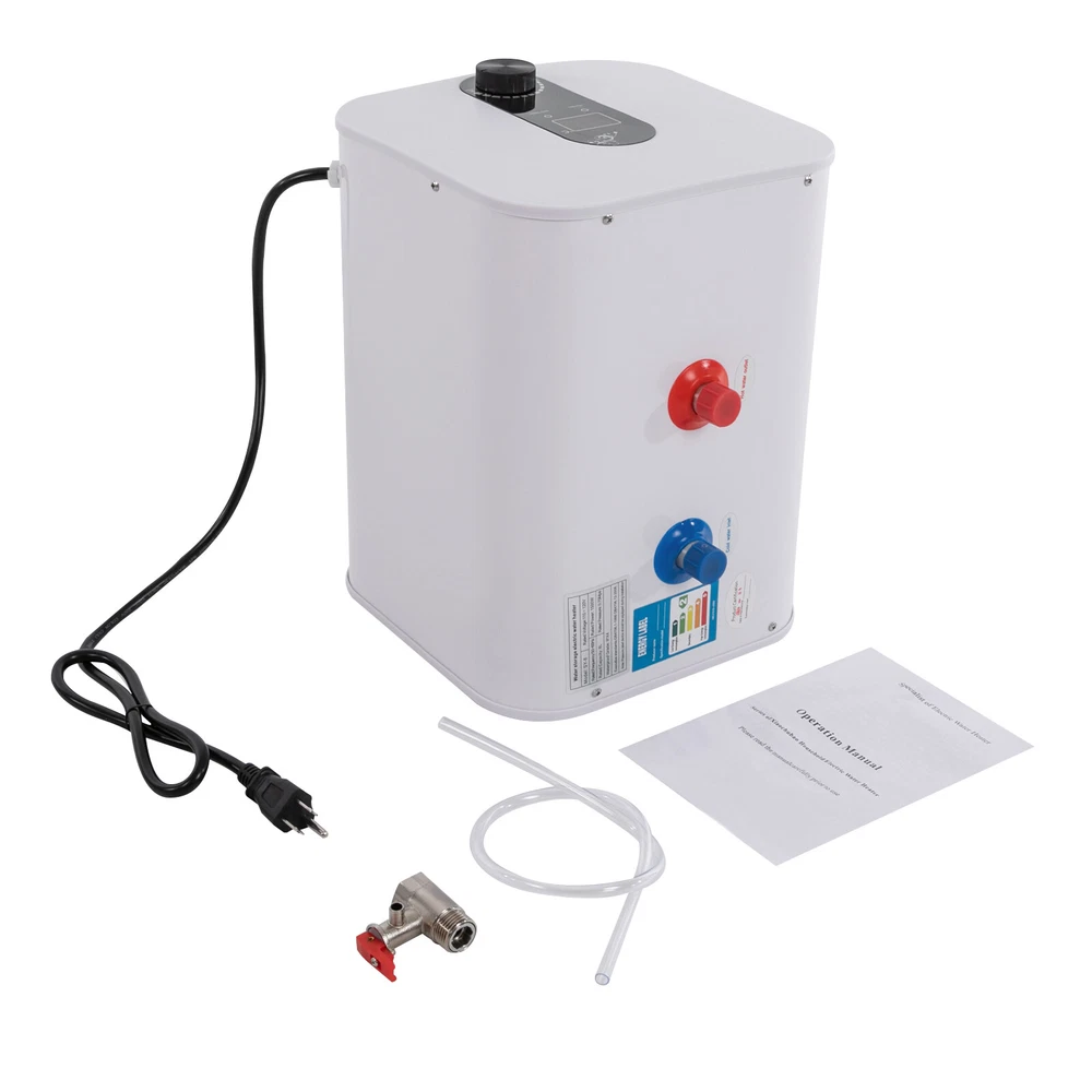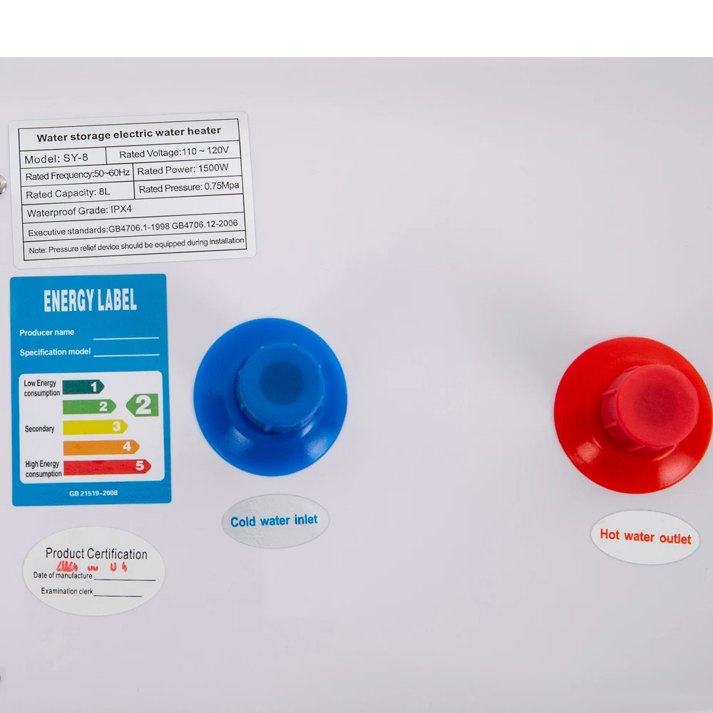 Description The exquisite mini electric water heater can bring you luxurious and comfortable water enjoyment, elevating your daily water use to a realm of elegance and convenience. Its streamlined design is ergonomic and blends seamlessly with the aesthetics of the kitchen, reflecting the ideal harmony between form and function. Its advanced heating technology ensures a steady supply of water at your desired temperature. Key Features Build to Last: It is mainly made of high-quality plastic and 316 stainless steel, making it insulating, strong, solid, wear-resistant, and not easy to deform, ensuring a long service life. High Efficiency: The 1500W power and fast heat conducting 316 stainless steel heating tubes can provide you with hot water in a short time without the need for water stora 8L Instant Water Heater Mini Electric Under Sink Hot Water Device for Kitchen welcome~ Description The exquisite mini electric water heater can bring you luxurious and comfortable water enjoyment, elevating your daily water use to a realm of elegance and convenience. Its streamlined design is ergonomic and blends seamlessly with the aesthetics of the kitchen, reflecting the ideal harmony between form and function. Its advanced heating technology ensures a steady supply of water at your desired temperature. Key Features Build to Last: It is mainly made of high-quality plastic and 316 stainless steel, making it insulating, strong, solid, wear-resistant, and not easy to deform, ensuring a long service life. High Efficiency: The 1500W power and fast heat conducting 316 stainless steel heating tubes can provide you with hot water in a short time without the need for water storage and preheating, avoiding long waiting times. Safety First: It has fault self-test, high-temperature protection, high voltage protection, grounding protection, anti-dry burn and leakage protection, to ensure the stability of the machine's operation and the safety of your use! Work Stably: This product works stably even at low water pressure (0.05-0.6MPa), on high floors, or during peak water use, allowing you to enjoy a constant flow of comfortable hot water. Thoughtful Design: You can adjust the set temperature (86-149°F) with the knob on the body. In addition, the 2.11-gallon capacity will meet the water needs of you and your family. Compact and Space-saving: With its compact size (14.57*10.24*11.42 inches) and simple structure, you can mount it vertically on the wall or under the sink/cabinet without taking up too much space. Ideal Gift: Thanks to its excellent performance, you can give it as a holiday, birthday, or housewarming gift to your family and friends. Protective Package: We have used foam to wrap this product, designed to minimize damage to the product during shipping. Details LED Screen and Indicators: They can show the temperature clearly and make it easy for you to use. Cold and Hot Water Inlets: They make it easy for you to link water pipes, faucets or shower heads. Pressure Relief Valve: It releases excess pressure to a safe level, thus protecting equipment, piping from damage due to overpressurization. Application It can be used in homes, schools, hospitals, offices, bars, kitchens, bathrooms, public restrooms, and laundries, etc. Specifications Color: White Style: Modern Material: Plastic and 316 Stainless Steel Model: SY-8 Shape: Rectangular Assembly Required: Yes Mount Type: Vertical Power Source: Corded Electric Plug Type: US Standard Screen Type: LED Rated Voltage: 110-120V Rated Frequency: 50-60Hz Rated Power: 1500W Rated Pressure: 0.75Mpa Rated Capacity: 8L/2.11Gal Operating Pressure: 0.05-0.6MPa Waterproof Grade: IPX4 Heating Time: 8-15min Operating Temperature: 30-65°C/86-149°F Interface Size: G1/2'' Product Size: 37*26*29 cm/14.57*10.24*11.42 in Package Size: 42.3*29*29cm/16.65*11.42*11.42in Gross Weight: 4.5kg/9.92lbs Net Weight: 3.8kg/8.38lbs Package Included 1* Mini Electric Water Heater 1* Pressure Relief Valve 1* Pilot Tube 1* English Operation Manual Notes The product needs to be energized after the water is turned on, and the applicable water pressure is 0.05-0.6MPa. The water inlet must be positioned upright, not sideways or flat. When you receive the product part of the water damage is normal, if the body has a slight scratch is normal, mind please be careful to purchase. Please note that the outlet temperature may be affected by the incoming water temperature, water pressure and voltage. Please read the English operation manual and the label on the body of the product carefully before use and pay particular attention to the safety instructions. Please allow the slight color difference caused by the shooting light and 1-3cm error due to manual measurement, and make sure you do not mind before ordering. Payment Delivery details Terms of sales About us Contact us Payment We accept ebay payment 。 Fees such as import duties, taxes are not included in the item price or shipping costs. These charges are the buyer's responsibility. Delivery details Shipping: 2-9 working days to: USA Terms of sales We maintain high standards of excellence and strive for hundred percent customer satisfaction. Feedback is very important to us. We hope that you contact us immediately before you give neutral or negative feedback, so that we can address your concerns. It is impossible to address issues if we do not know about them! About us Your satis faction is our ultimate goal. We work hard to earn your trust and future business. Our certified technicians have tested each item before shipping. The unit comes with 1 year limited warranty on all manufacturing defects. a) If you receive a defective item, you may return it or ask for a discount. Please contact us within 14 days after you receive the package. b) What you returned must be intact and in its original packaging as re? u. Customer is responsible for shipping costs of the returned item. c) We will cover the cost of shipping back t with the shipping rate indicated