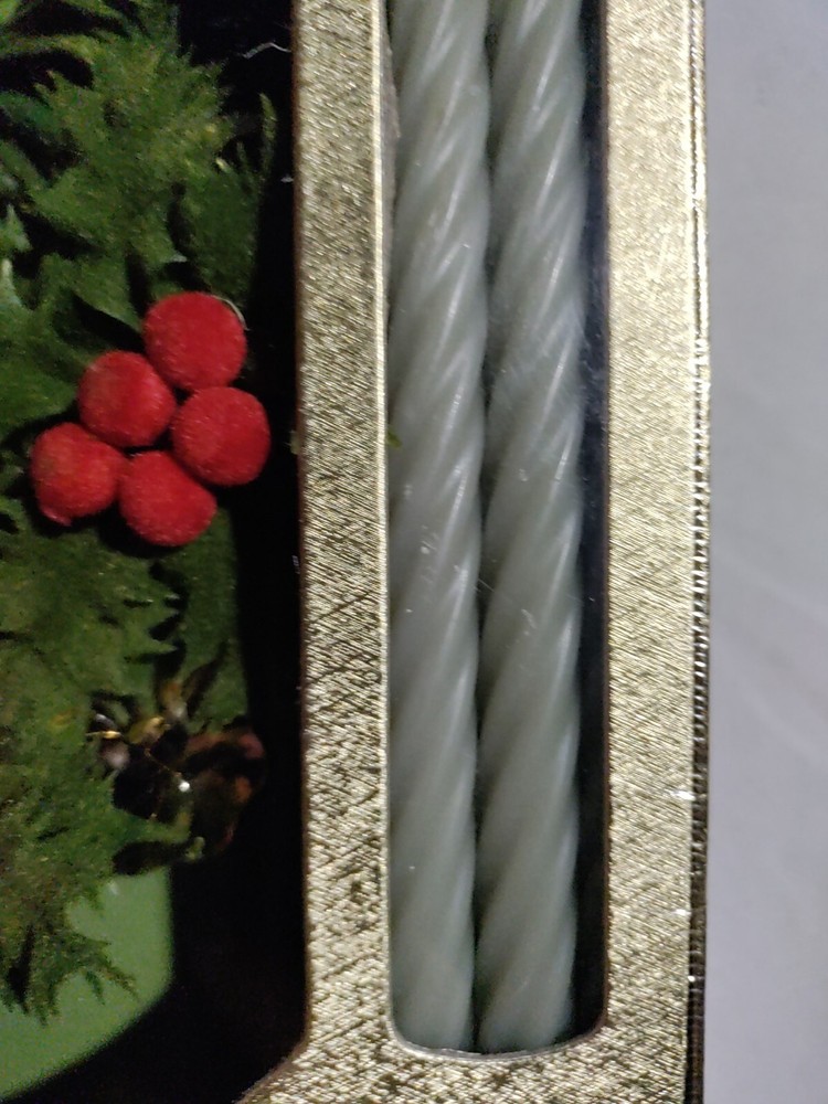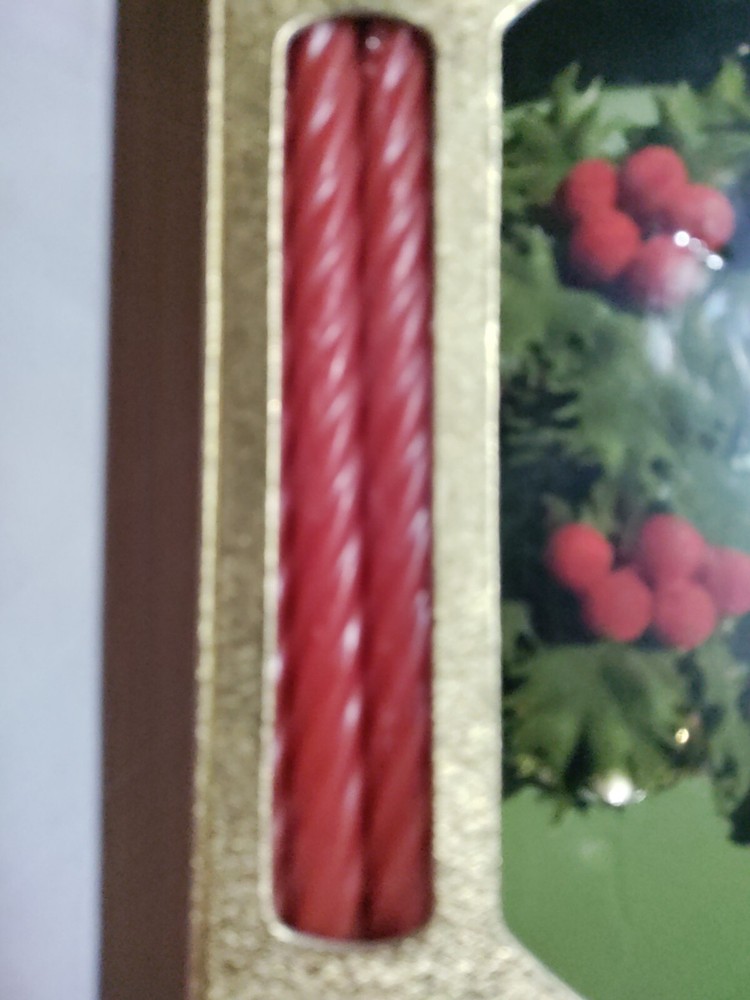 Brand new in box colonial candle company holiday candle ring with brass colored taper holder and red and green candles