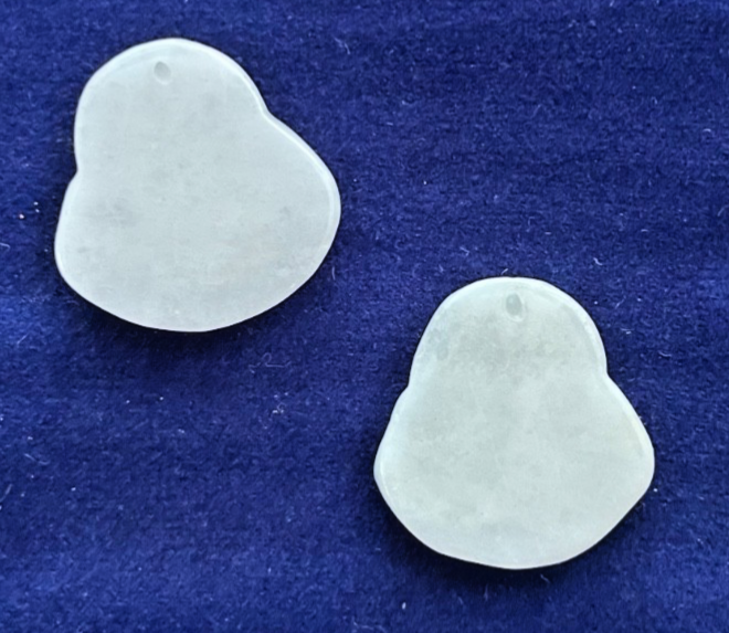 These two Jade Buddha’s already have a hole drilled in the top of each one to make as a pendant.