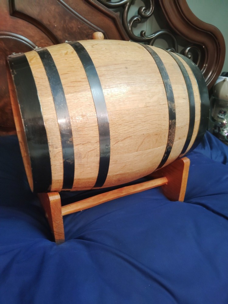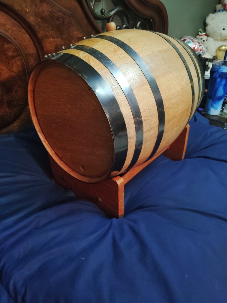 This tiny wooden keg is absolutely adorable! The craftsmanship is impressive, and the 1:12 scale fits perfectly in my dollhouse bar. Though the tap is missing, it still looks fantastic on the stand. A charming addition to any miniature scene!