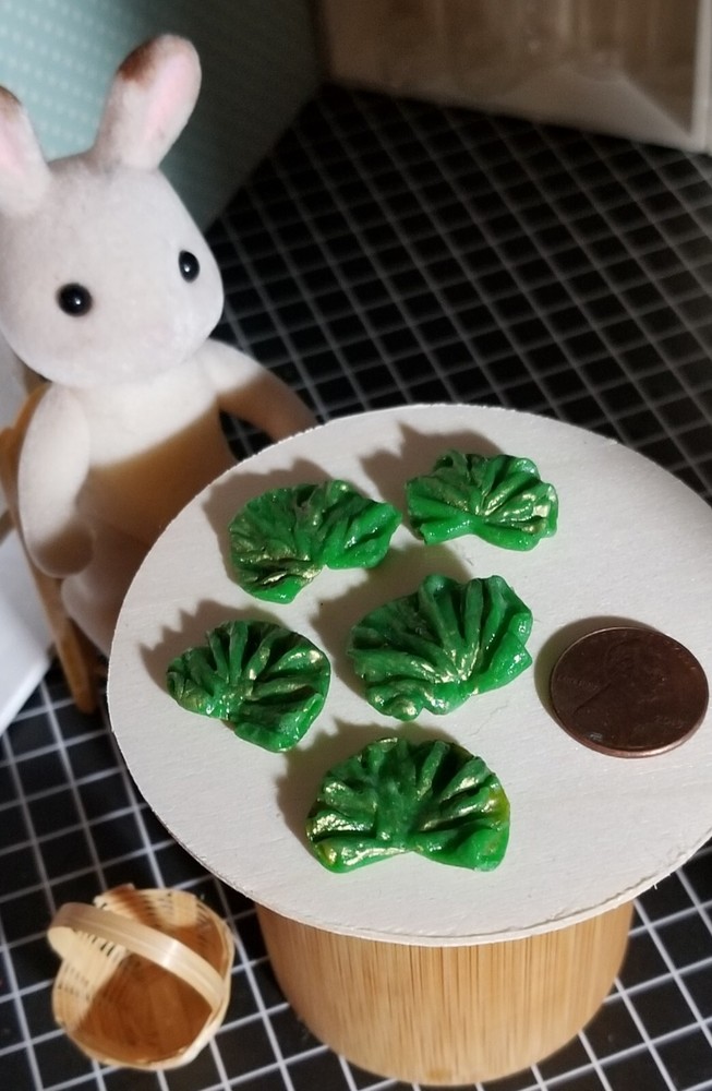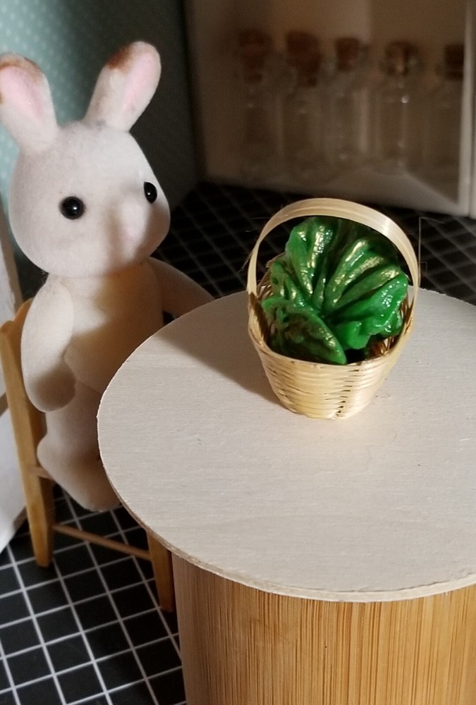 You are bidding on a cute, sweet 1:6 size miniature wicker Basket filled with 5 yummy, assorted size, loose Lettuces, exactly as shown! (Please note: the bunny doll, table & other items are not included & are used for your scale example only ;) This item is new, & handmade by me from clay & painted; excellent quality & made to be sturdy and durable for any doll house, bakery, farmers market / kitchen, or similar room box / diorama type display purposes! :) We will always happily combine shipping on multiple wins or purchases on items ending within the same week to help save you $$. Otherwise, we generally ship same or next day. Thanks so much for stopping by to check out all our auctions! Happy Bidding! :)