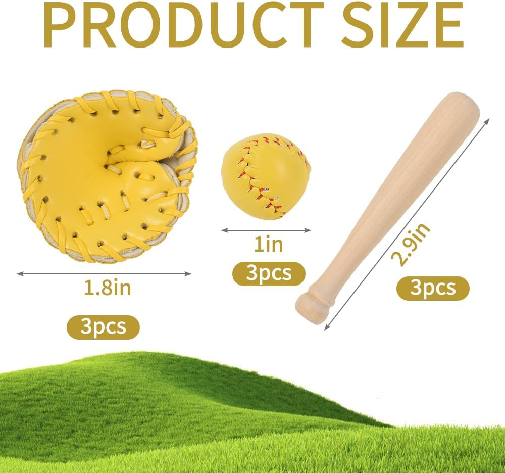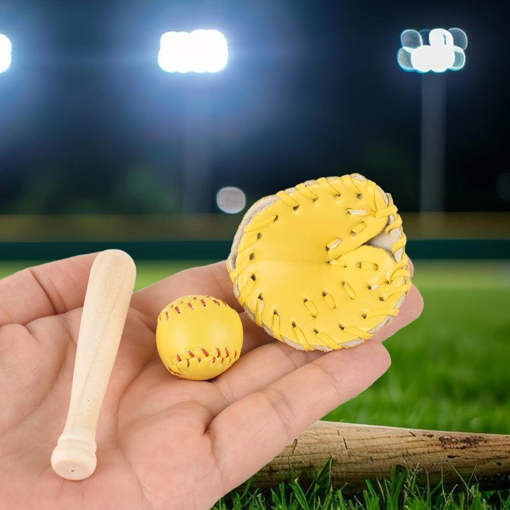 Miniature Baseball Bat Set - 9Pcs Dollhouse Sports Accessories with Glove & Ball