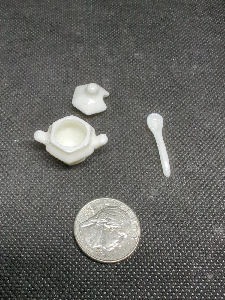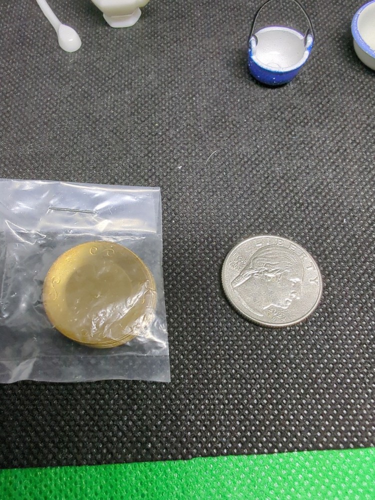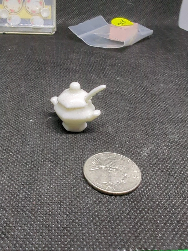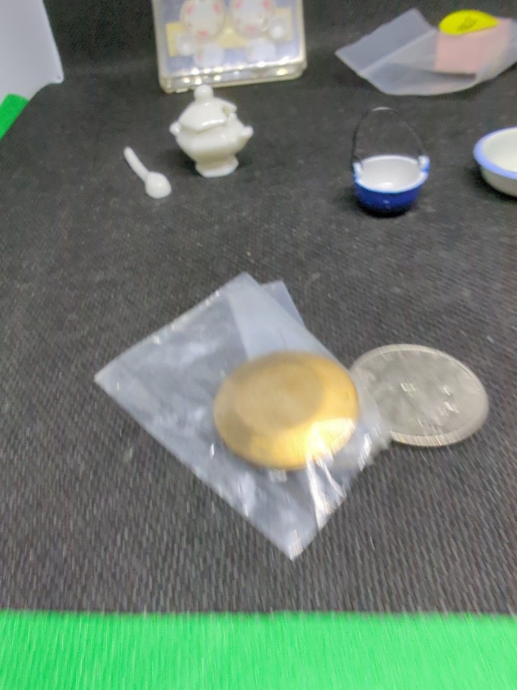 The product is a set of miniature dollhouse accessories including dishes and a soup tureen, all in the charming Chrysnbon style. This lot of kitchenware items is perfect for adding realistic details to a dollhouse kitchen setting. As a special bonus, the set comes with a free gift, adding extra value to the purchase. Ideal for collectors or enthusiasts of dollhouse décor, these accessories enhance the aesthetic of a miniature world. 534
