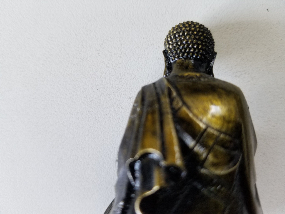 This miniature Buddha figurine is a majestic and intricate decoration piece that will be a wonderful addition to your collection. It is made of high-quality resin and sports a glorious gold tone that is sure to give it a regal appearance. Measuring 2.5 inches, the figurine is perfect for display on a shelf or tabletop, making it an excellent gift for any Buddhist art enthusiast. Very good preowned condition with no flaws. Please view photos.