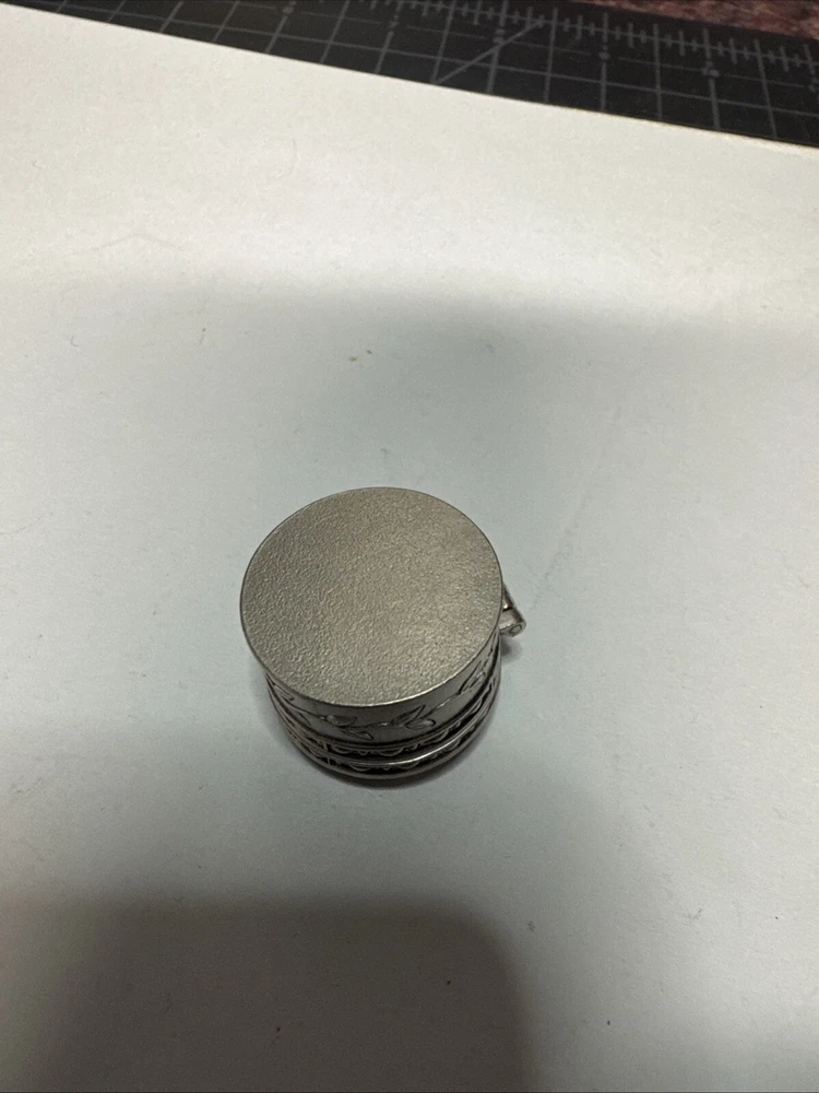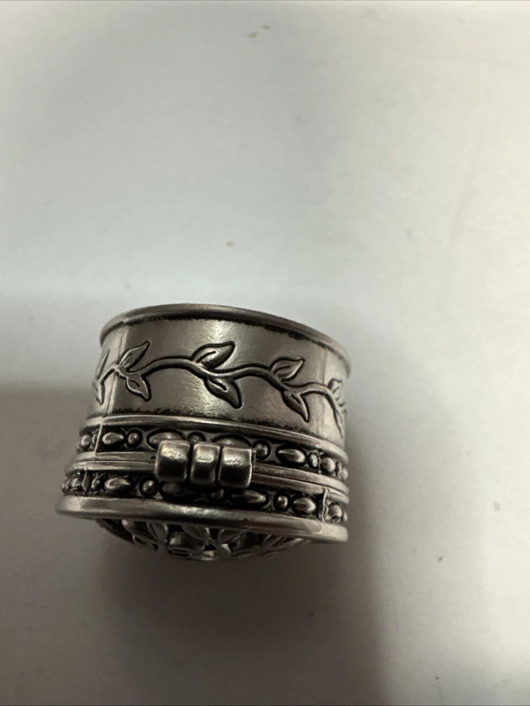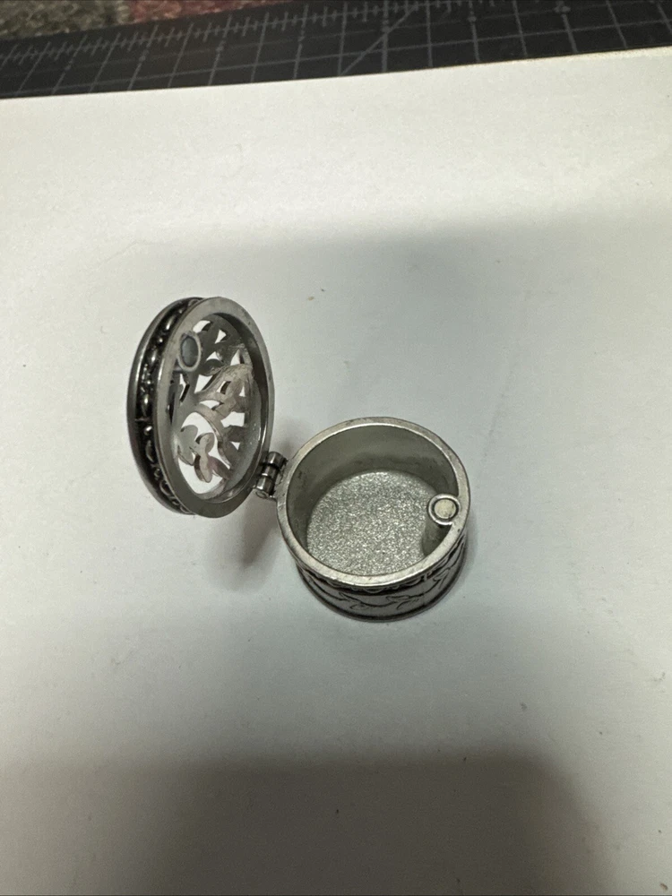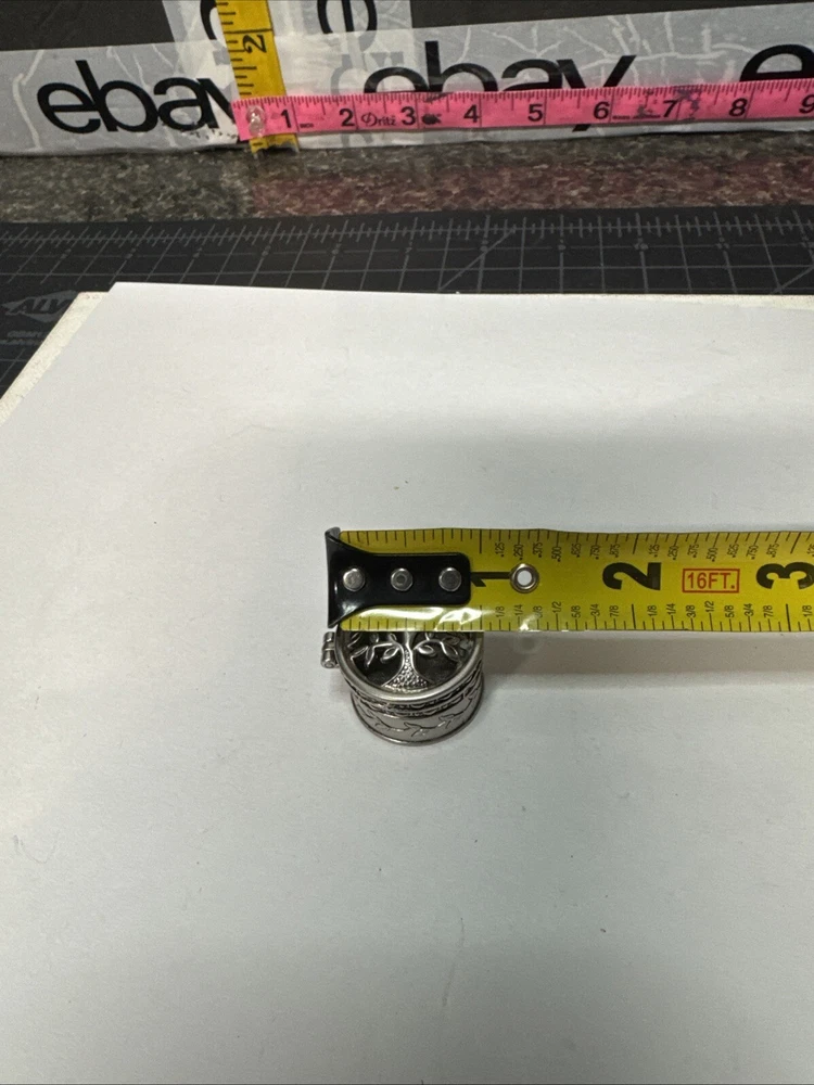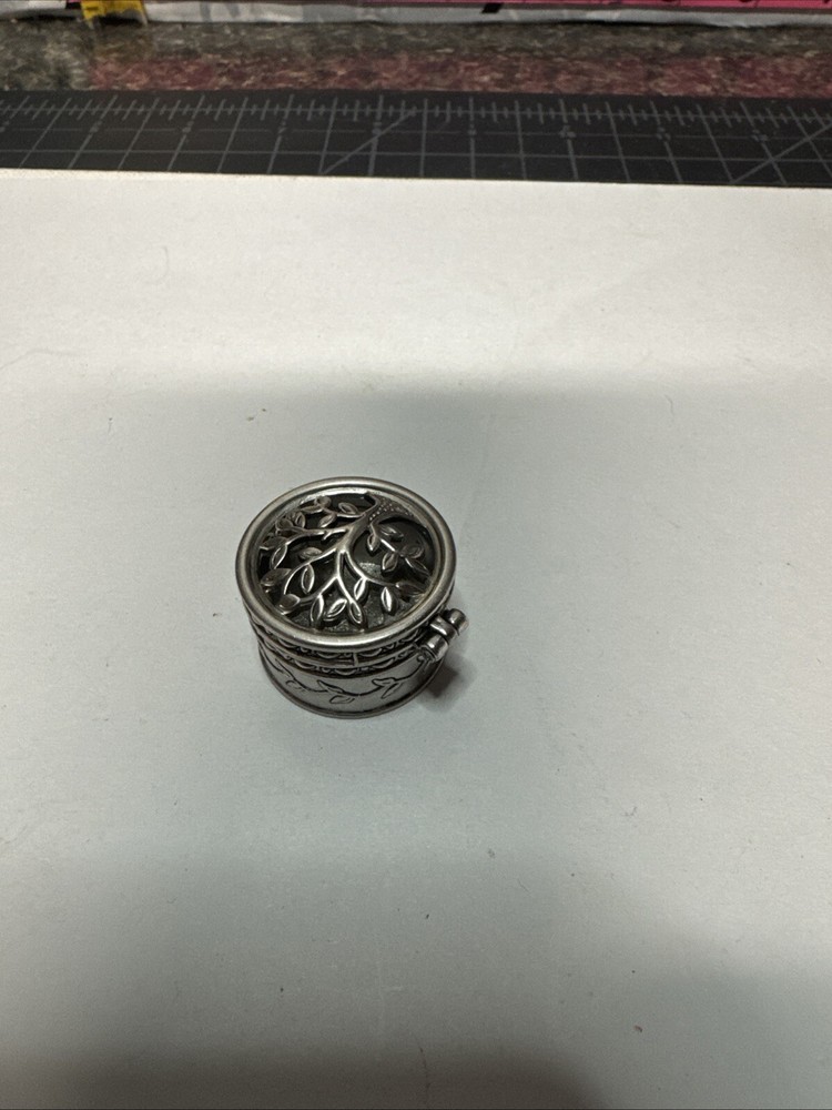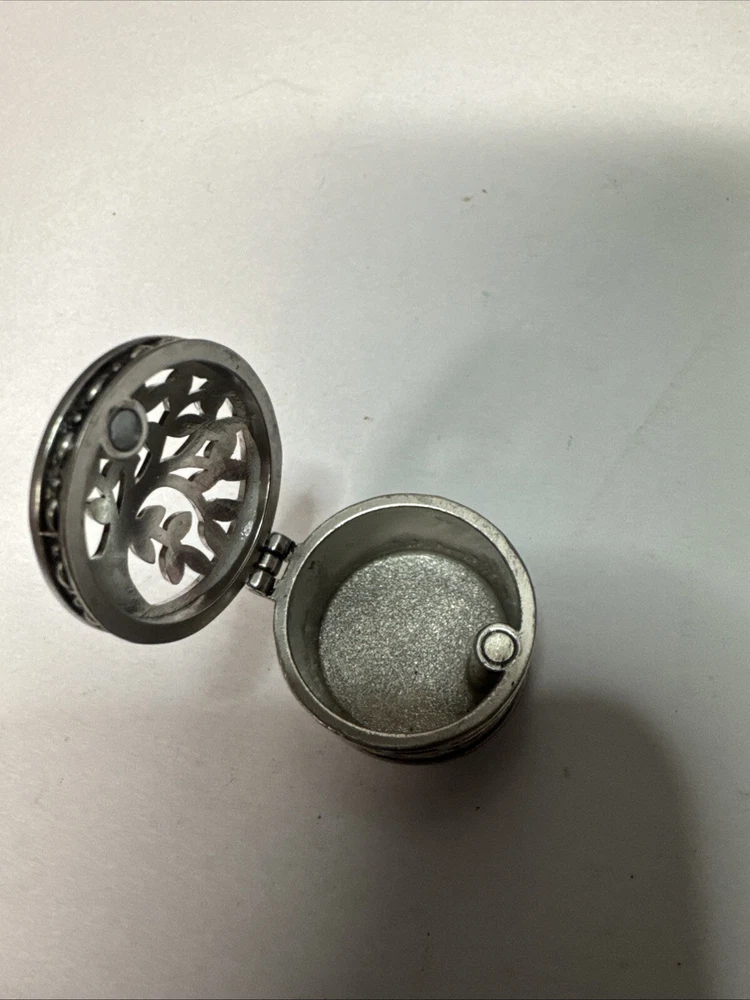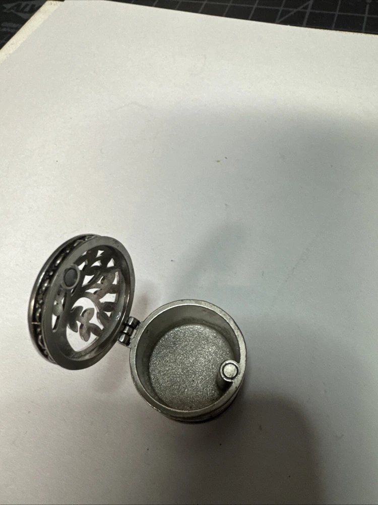 Collection: Keepsake Boxes Color: Silver Brand: Unbranded Type: Miniature Shape: Round Features: Boxed Finish: Silver Tone Pattern: tree Material: Metal Subject: Tree Closure Type: Magnetic