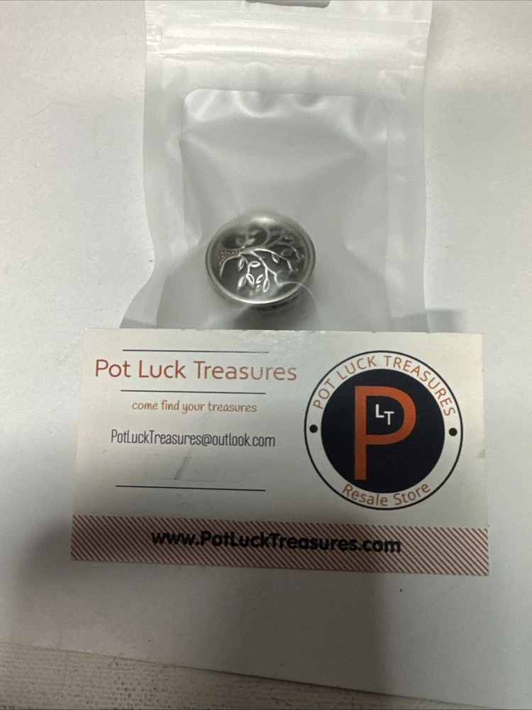 The Miniature Tree of Life keepsake box is a round, silver tone metal box featuring a tree pattern on its lid. It is designed as a miniature decorative piece with a magnetic closure, making it ideal for storing small trinkets or precious items. The silver finish adds a touch of elegance to the piece, making it a charming addition to any collection of keepsake boxes. Please see photos for condition. Please feel free to contact us with any questions before purchasing.