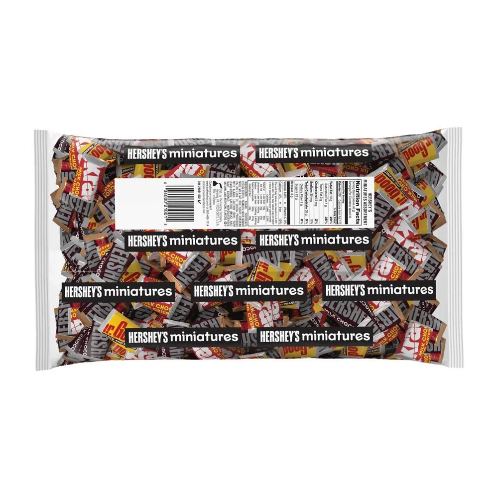 There's something for everyone in this Miniatures assortment. Find miniature versions of all your favorite chocolate bars in one sweet bag, including milk chocolate bars, SPECIAL DARK mildly sweet chocolate bars, KRACKEL chocolate candy with crisped rice and MR. GOODBAR chocolate candy with peanuts. Enjoy delicious candy classics individually wrapped for lasting freshness and convenience all year long. Perfect for lunch boxes, movie nights, game nights, snack breaks, sharing moments and candy dishes at home and in the office, these milk and dark chocolate miniatures will keep your snacking fun and simple. Give a variety of chocolates to your favorite people on Easter, Valentine's Day, Halloween, Christmas or an ordinary day when you're in a generous mood. Want to take these treats a step further? Place a Miniatures chocolate bar on top of your best baked goods to please the crowd with your culinary genius! Contains one (1) 66.7-ounce bulk bag of Miniatures in an assortment featuring Milk Chocolate, SPECIAL DARK Mildly Sweet Chocolate, KRACKEL Milk Chocolate with Crisped Rice and MR. GOODBAR Chocolate Candy with Peanuts Fill snack drawers, candy dishes and lunch boxes with variety chocolate candy sure to sweeten any season Certified kosher milk and dark chocolate bars individually wrapped for easy storage and lasting freshness Perfect for graduations, back to school preparation and birthday parties A delectable assortment of smooth milk chocolate, milk chocolate with peanuts, milk chocolate with crisped rice and semi-sweet dark chocolate