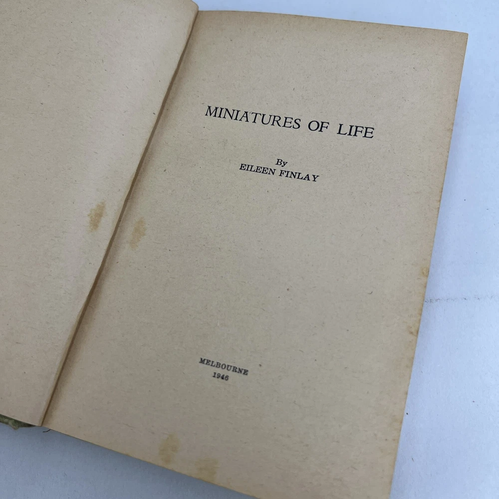 Miniatures of Life by Eileen Finlay 1946 1st ed Short Stories Australia RARE The book you have purchased. This book is being posted to you from Naarm/Melbourne Victoria. All books are stored in climate controlled conditions and are posted to ensure safe arrival. I have loved books since the day I could read so treat my books well as soon as they come into my hands. The listed condition of the book is as set by eBay criteria. The book in the pictures is the book you will receive. Please be aware that as the book is pre-loved it will show appropriate signs of use. Defects such as marks, stains, inscriptions, rips,tears or damage (including repairs) will be documented in the photos as much as I am able but please understand I cannot check every single page particularly with bundles. Postage Your book will be packed to make sure it arrives safely and quickly. If you have a problem I want you to be happy with your purchase. If you have a genuine problem please message me and I can sort it out for you. Returns I offer free 30 day returns. That is, if you have a genuine reason for not being happy with your purchase I will refund the purchase price and the postage you paid as well as the cost of returning the item to me.