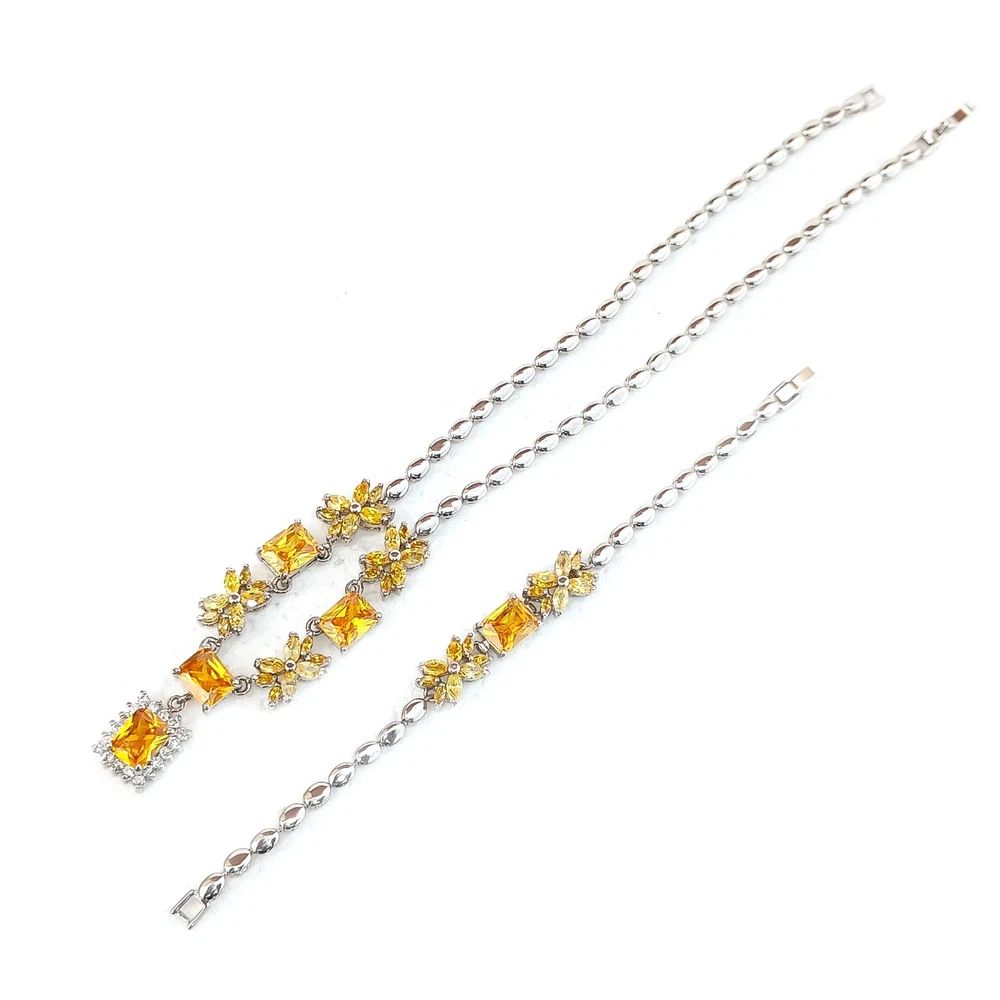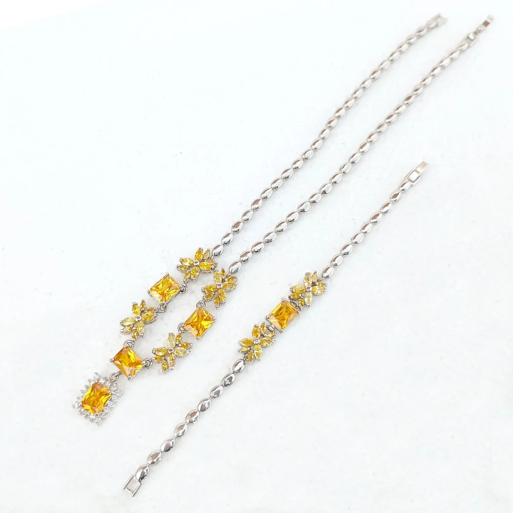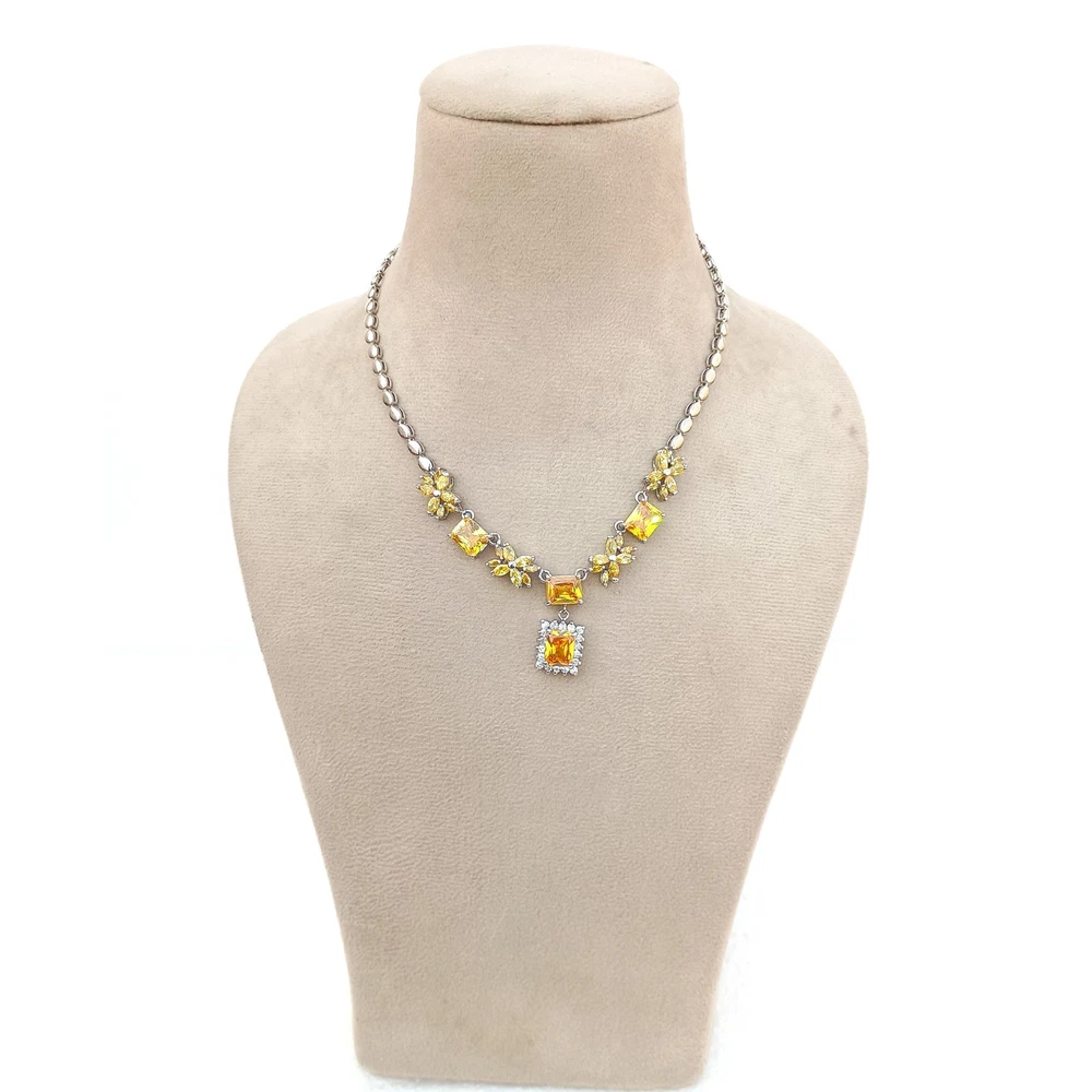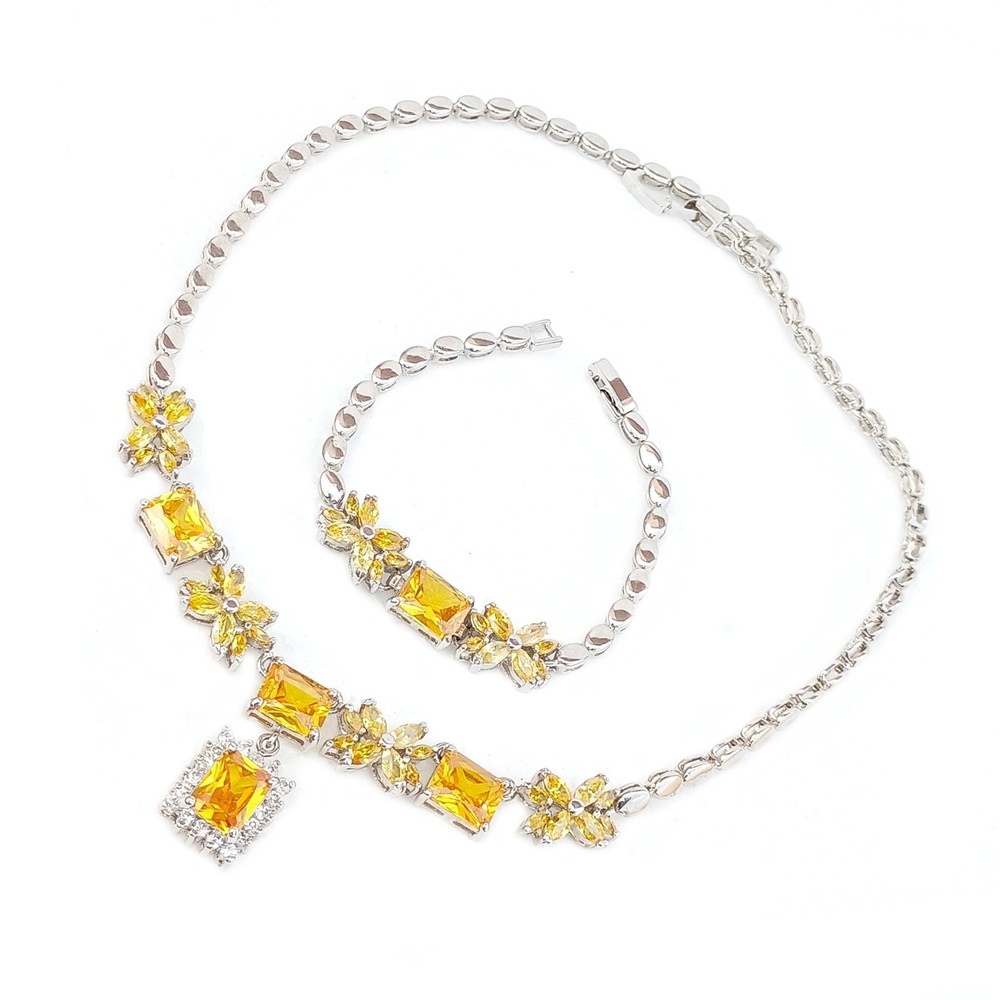 Base Metal: Brass Material: CitrinStone Theme: Princess Secondary Stone: Cubic Zirconia Color: Yellow Main Stone: Citrine Main Stone Creation: Simulated White Gold Plated Occasion: Prom Main Stone Shape: Square Country/Region of Manufacture: India Main Stone Treatment: Faceted Handmade: Yes Total Carat Weight: 45 grams Diamond Clarity Grade: Flawless (FL) Diamond Color Grade: AAA Set Includes: Earrings & Bracelet SKU-467 ✨ HIGH QUALITY: We take pride in crafting each piece by hand, using only the finest materials. Our products undergo rigorous sanitization processes to ensure your safety and satisfaction. ✨ DAZZLING: Our handmade necklace exudes a superior charm, effortlessly elevating your look for any occasion. Whether you're at the office or out for an evening event, its minimalist yet boho-inspired style complements every outfit with grace. ✨ OUR SERVICE: Your satisfaction is our priority. Should you have any questions or concerns, our dedicated team is here to assist you promptly. Expect a response within 24 hours, ensuring a seamless shopping experience. Indulge in the splendor of our Long Handmade Necklace, a timeless statement piece that embodies the beauty of Indian craftsmanship and style.