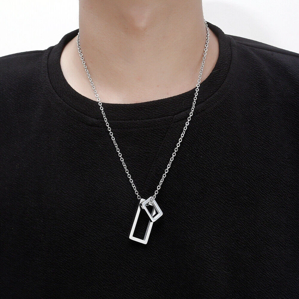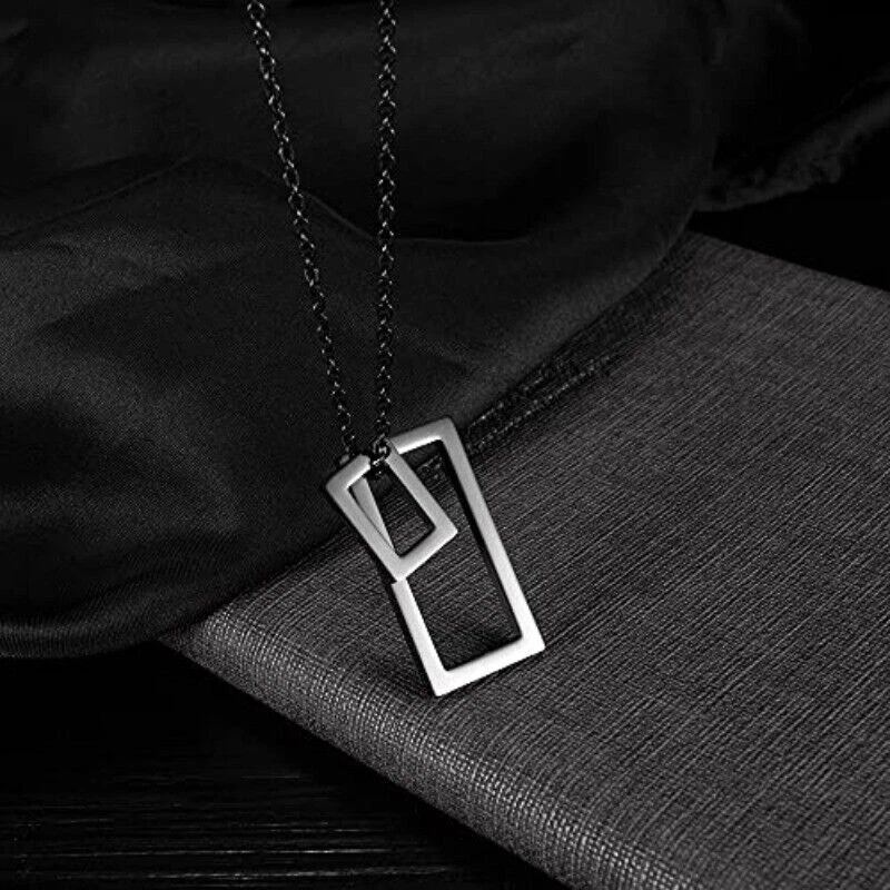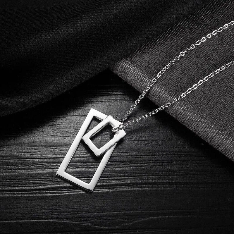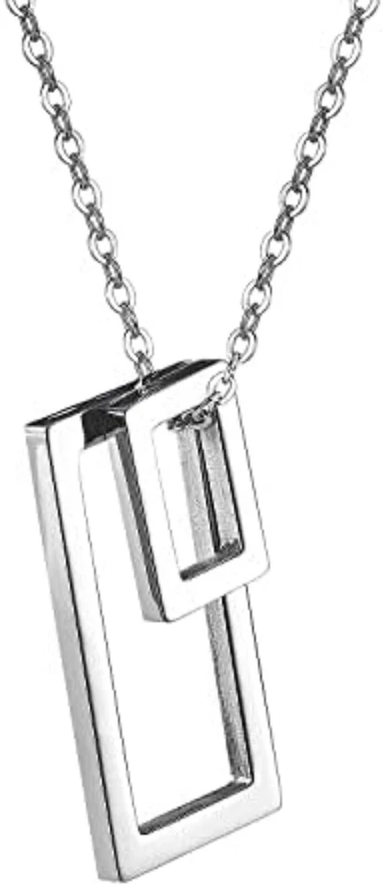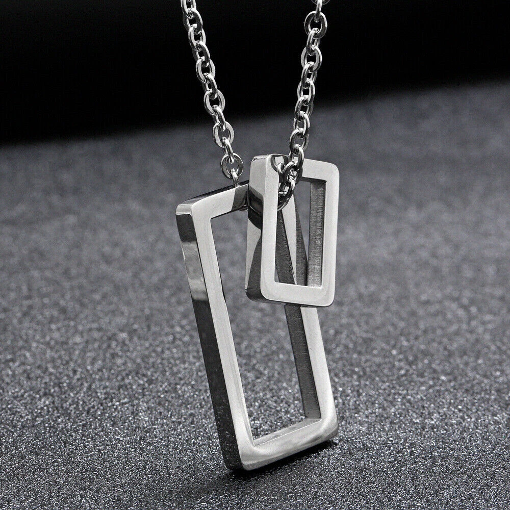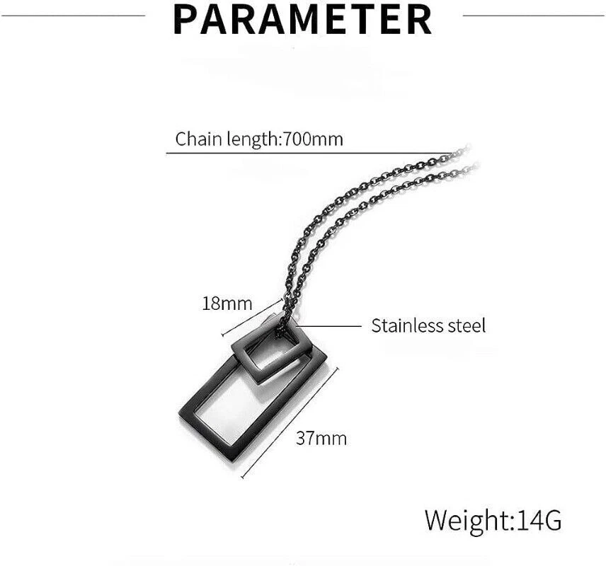 Stunning minimalist design featuring a geometric square pendant. Made from high-quality stainless steel for enhanced durability. Suitable for both men and women looking for a fashion-forward accessory. Perfect for wearing on any occasion including casual outings and formal events. The sleek and elegant design makes it a great gift for any fashion-conscious individual. Brand: Cy trendy Metal (Pendant): 316L Stainless Steel Metal (Chain): 316L Stainless Steel Pendant Size (Large): 37mm(H) Pendant Size (Small): 18mm(H) Chain length: 70cm Pendant Weight: 14g We offer high quality rings and necklaces, Not like many others who misclaim their rings are made of 316L are actually 304 or 316 steel, We use GENUINE 316L Stainless Steel as material,The 316L stainless steel do not suffer corrosion,tarnish or rust when expose in wet environment, It is one of the best metal when choosing rust resistance rings and necklaces because of it's sufficiently reactive to protect itself from further attack by forming passive corrosion product layer Package include : 1 x necklace