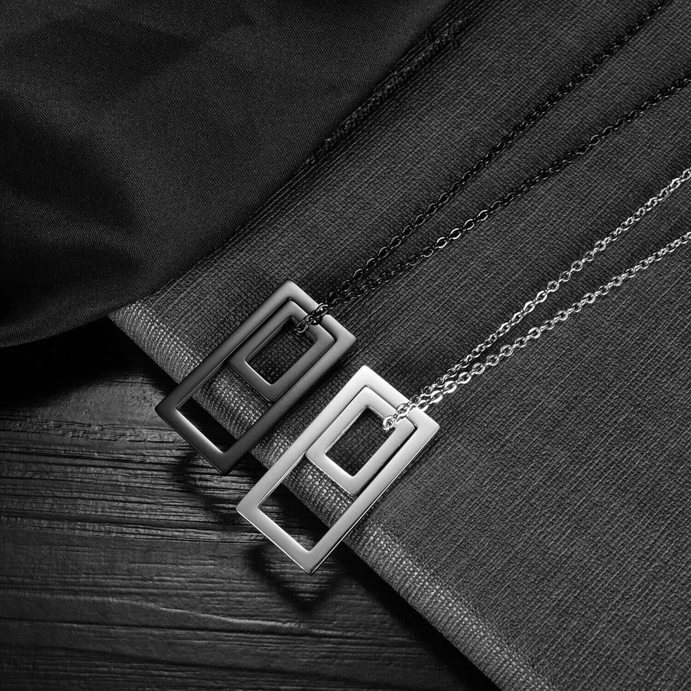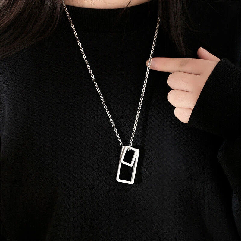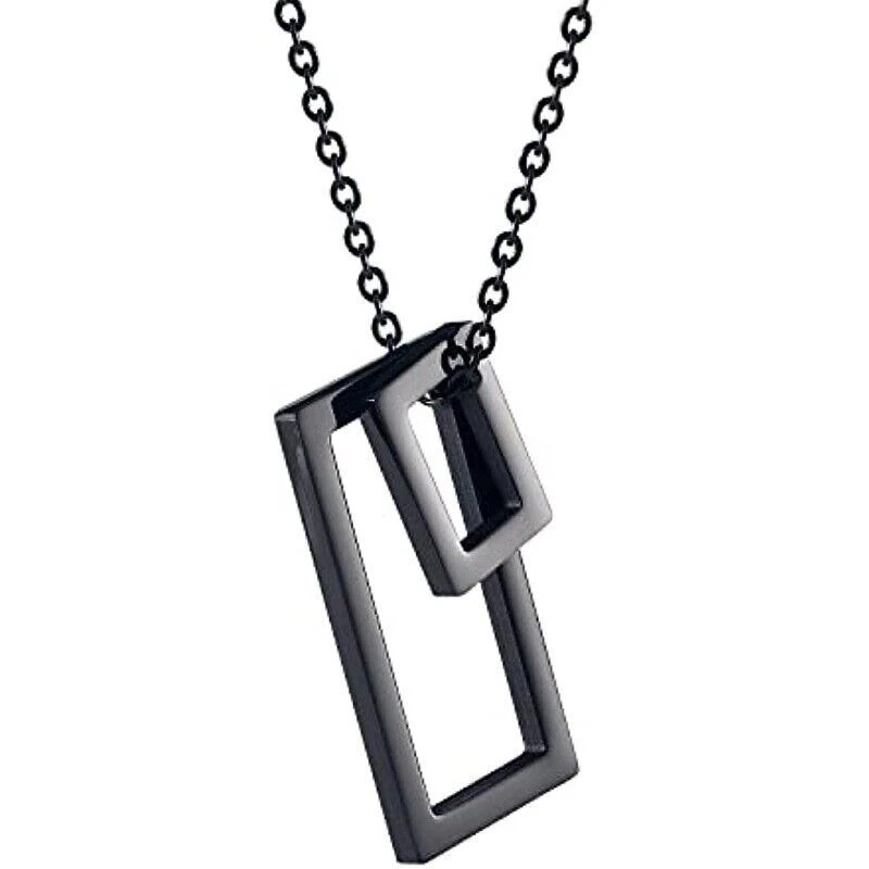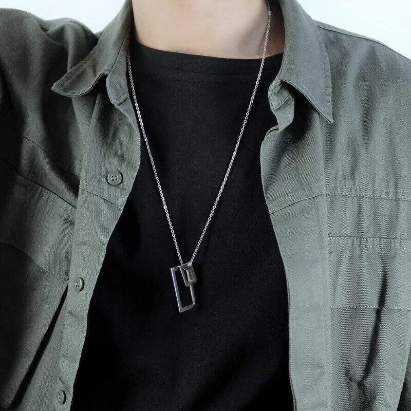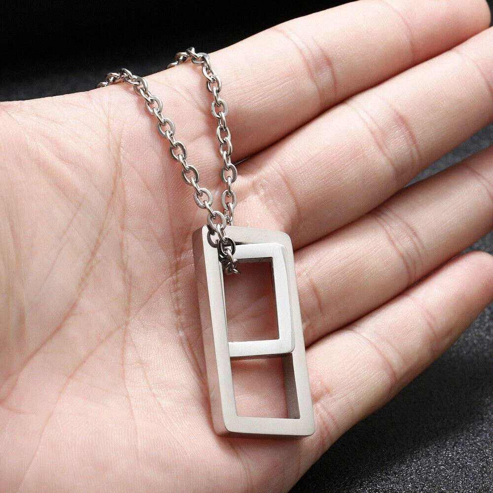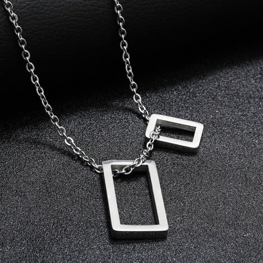 Stunning minimalist design featuring a geometric square pendant. Made from high-quality stainless steel for enhanced durability. Suitable for both men and women looking for a fashion-forward accessory. Perfect for wearing on any occasion including casual outings and formal events. The sleek and elegant design makes it a great gift for any fashion-conscious individual. Brand: Cy trendy Metal (Pendant): 316L Stainless Steel Metal (Chain): 316L Stainless Steel Pendant Size (Large): 37mm(H) Pendant Size (Small): 18mm(H) Chain length: 70cm Pendant Weight: 14g We offer high quality rings and necklaces, Not like many others who misclaim their rings are made of 316L are actually 304 or 316 steel, We use GENUINE 316L Stainless Steel as material,The 316L stainless steel do not suffer corrosion,tarnish or rust when expose in wet environment, It is one of the best metal when choosing rust resistance rings and necklaces because of it's sufficiently reactive to protect itself from further attack by forming passive corrosion product layer Package include : 1 x necklace