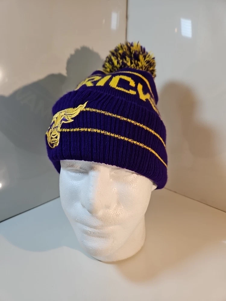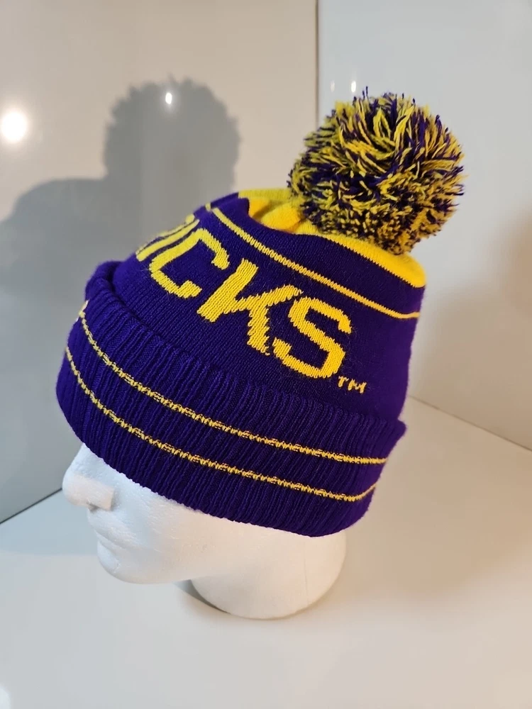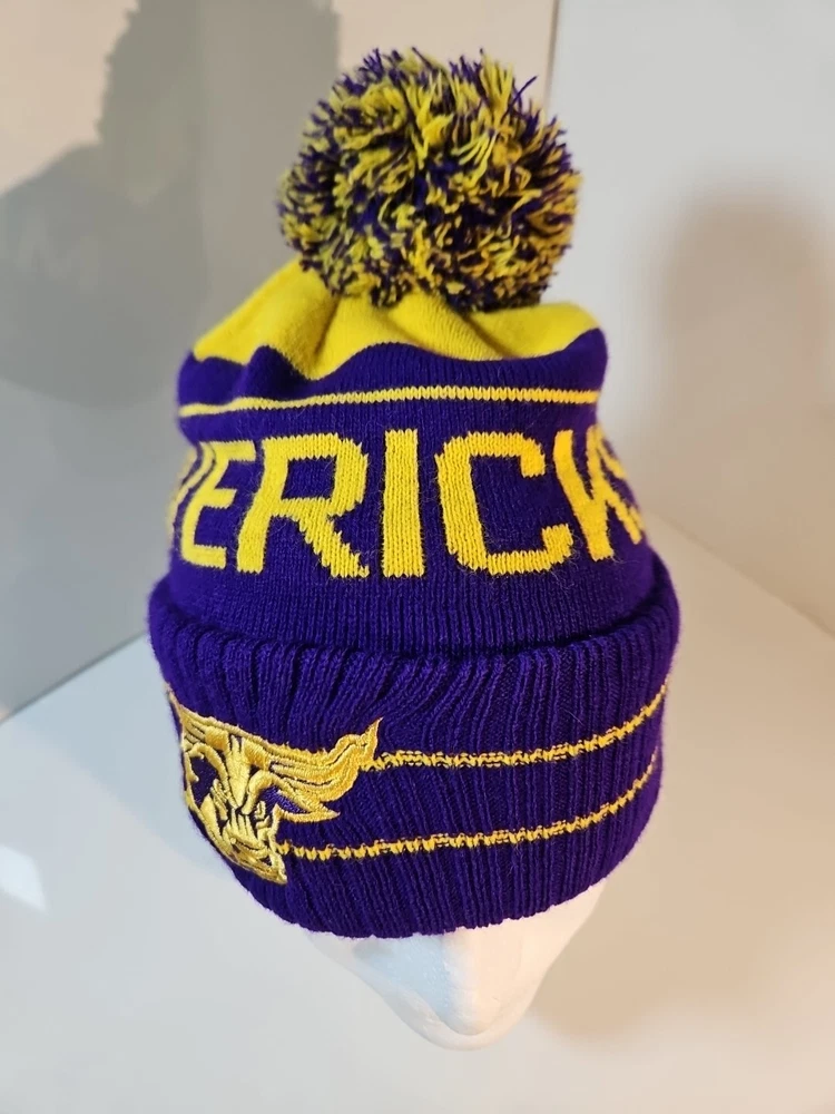 Minnesota Mavericks NCAA Beanie Cap Winter Pom Purple GOLD BULL LOGO GUC Product will be shipped timely and packaged with care. Offers are encouraged. Please feel free to reach out with questions. Please see pictures. Thank you. Good used condition. Light wear from age and use. Markings from age and use. See pictures Show your support for the Minnesota Mavericks with this stylish and cozy beanie cap. The cap features the team's iconic gold bull logo on a purple background, making it the perfect accessory for any fan of the team. It is made by the trusted brand Traditions and is designed to fit most people with its one size fits all size. This cap is perfect for basketball games or just everyday wear. It is made of high-quality materials to ensure that it lasts for a long time. Get your hands on this must-have accessory for any Minnesota Mavericks fan today! Hc1bb