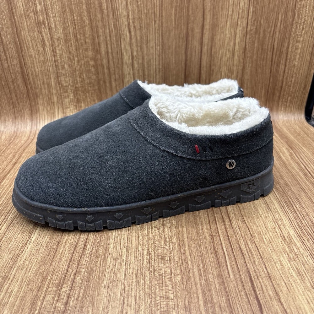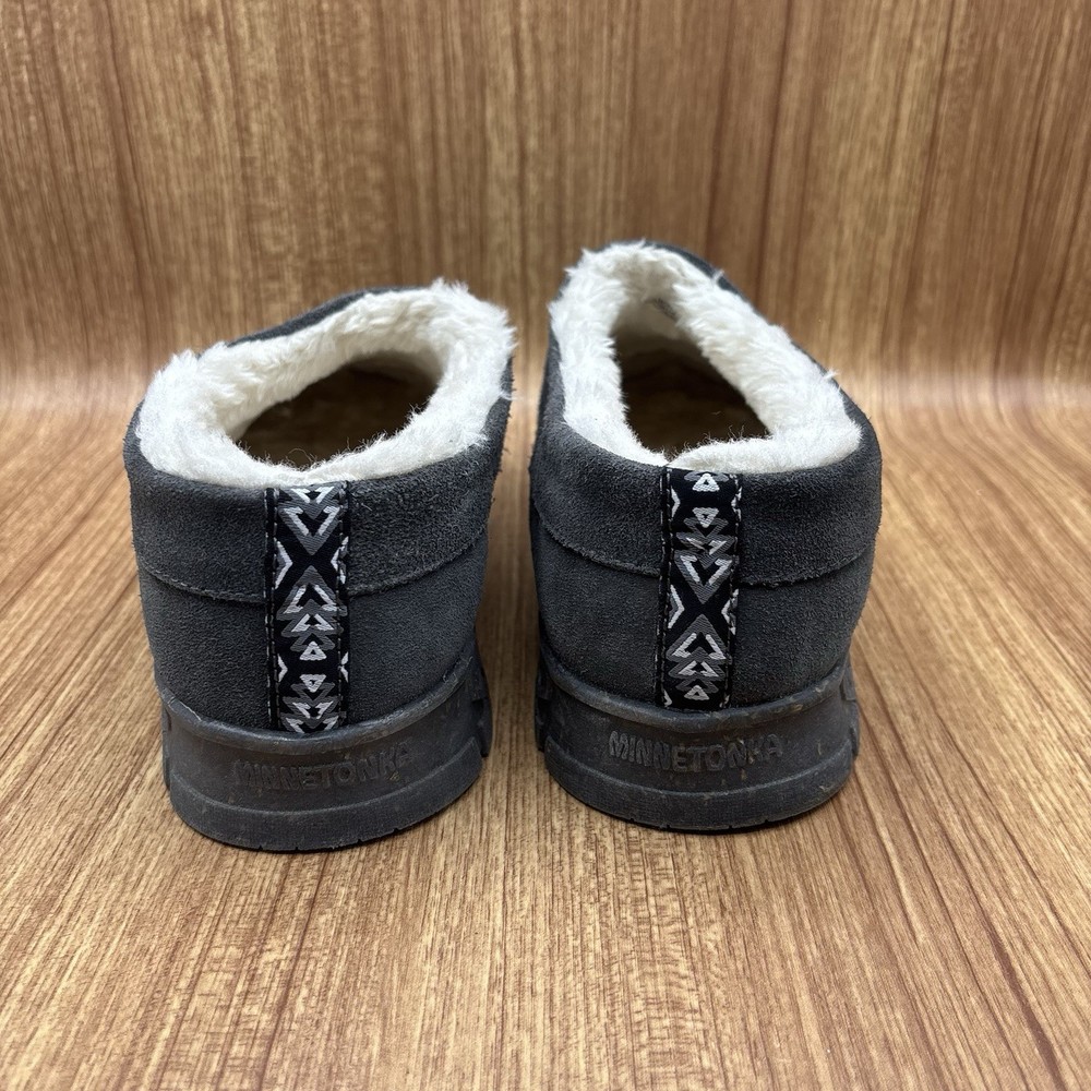 Minnetonka Neva Suede Slip-on Clog Slipper Charcoal Womens Size 10 M Plush lining Water and stain resistant See photos