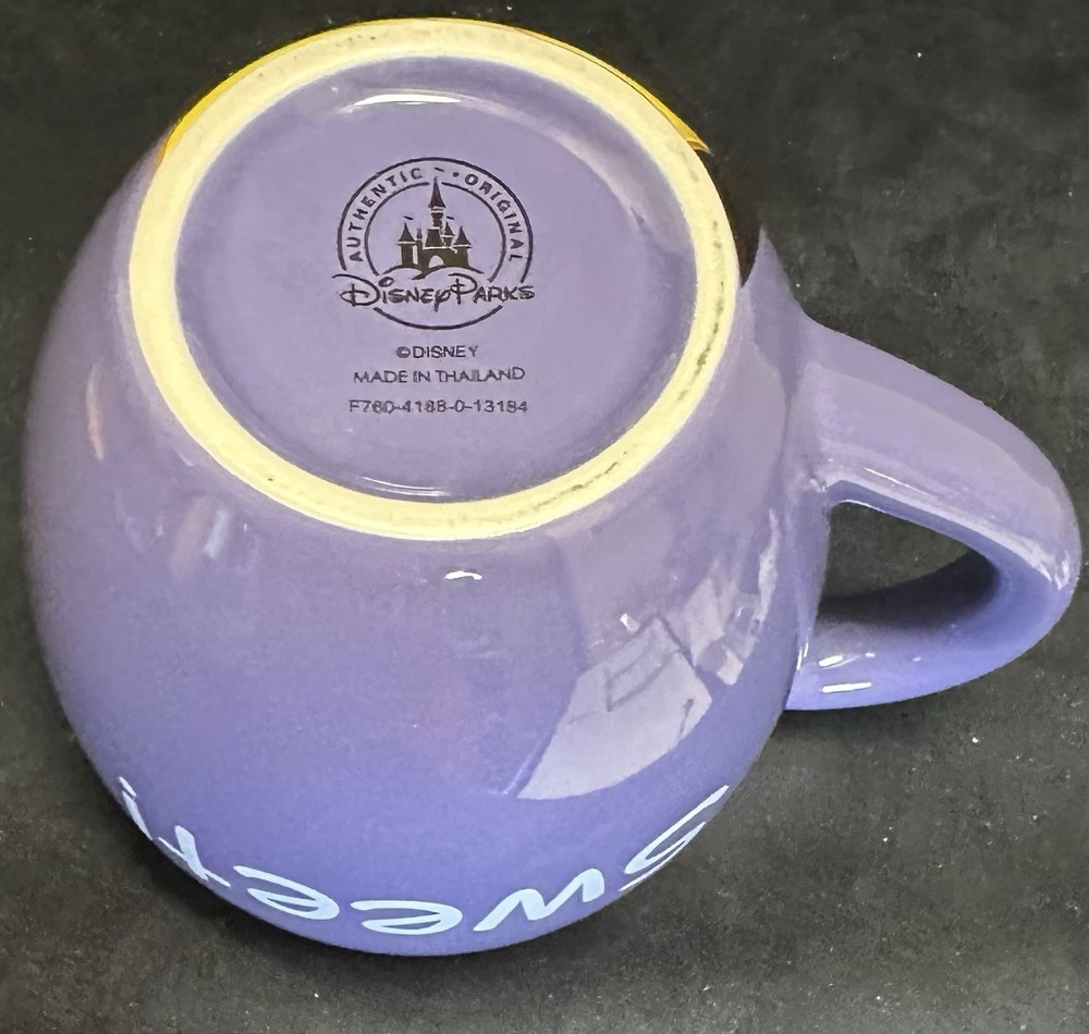 The product is a Walt Disney World Minnie Mouse coffee mug in purple, featuring the character Minnie Mouse from the Disney franchise. Made in Thailand, this collectible mug is a must-have for fans of Disneyana and collectors of contemporary memorabilia. With its unique design and iconic character, this mug adds a touch of sweetness to your morning cup of coffee or tea. It is a delightful addition to any Disney fan's collection and a fun way to show off your love for the beloved Minnie Mouse character.